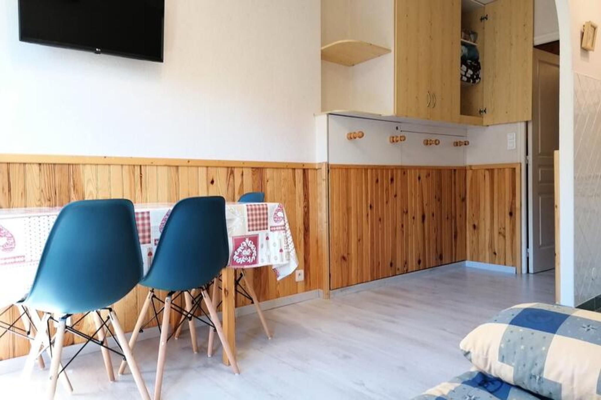 Denne hyggelige studiolejlighed tilbyder et komfortabelt tilflugtssted for op til 4 gæster med 24 m² veldesignet plads. Indgangen har to køjesenge, mens stuen har en dobbelt sovesofa, fladskærms-tv og spiseplads. Lejligheden er strengt røgfri og tillader ikke kæledyr, hvilket sikrer et rent og fredeligt miljø. En individuel skiboks er til rådighed for din bekvemmelighed, og lejligheden er udstyret med varme og varmt vand. Beliggende kun 350 meter fra pisterne og en kort 150-meter gåtur til indkøbscentret, er denne studio ideel beliggende for både vintersportsentusiaster og dem, der ønsker at udforske lokale butikker og faciliteter. Området byder på masser af muligheder for afterski-afslapning med nærliggende caféer og restauranter at nyde efter en dag på pisterne. Nærheden til parken forstærker den fredelige atmosfære, perfekt til at slappe af under dit ophold. Studiet har et veludstyret køkkenområde med 2 keramiske kogeplader, en ovn, mikroovn, køleskab med fryser, elektrisk kaffemaskine, elkedel og brødrister, så du nemt kan tilberede måltider. Bruserummet indeholder brusekabine og toilet. Lejligheden nyder også godt af alu karnapper og en elektrisk rulleskodde for ekstra komfort.