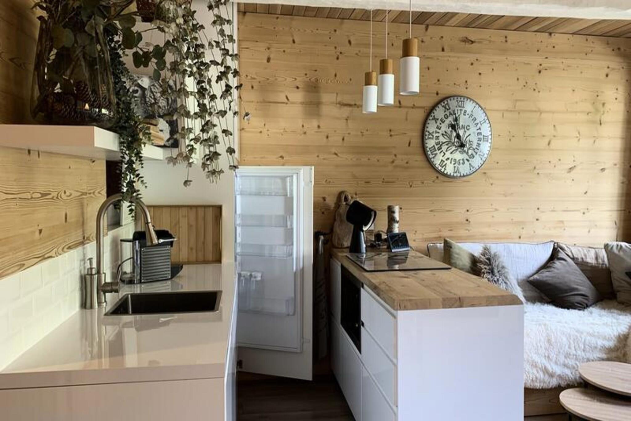 Denne hyggelige toværelses lejlighed, designet til at rumme op til seks personer, tilbyder et komfortabelt og moderne tilflugtssted kun 300 meter fra pisterne og 250 meter fra indkøbscentret. Beliggende på tredje sal, kan den 45 m² store lejlighed prale af en charmerende syd-vest eksponering med en rummelig terrasse med udsigt over tennisbanerne. Ejendommen har Wi-Fi, hvilket gør det til en perfekt blanding af bekvemmelighed og fritid. Den gennemtænkte indretning omfatter en indgang med en 120x190 seng og en 90x190 mezzaninseng. Stuen er indrettet med en hjørnesofa med to 90x190 senge, et HD-tv, en spiseplads og adgang til altan. Det veludstyrede køkken omfatter fire induktionskomfurer, et køleskab med fryser, en kombineret mikrobølgeovn, en opvaskemaskine og specielle apparater som en Nespresso kaffemaskine, raclettemaskine og fonduemaskine. Soveværelset byder på en 140x190 dobbeltseng, TV og skydebar karnap, der fører til altanen. Et renoveret badeværelse indeholder badekar og toilet. Yderligere faciliteter inkluderer et skiskab for bekvemmelighed og en indbydende atmosfære forstærket af parketgulve og smagfulde renoveringer. Bemærk venligst, at denne ikke-ryger lejlighed strengt forbyder kæledyr. Dens enestående beliggenhed og stilfulde interiør giver en varm og indbydende atmosfære til en mindeværdig alpine ferie.