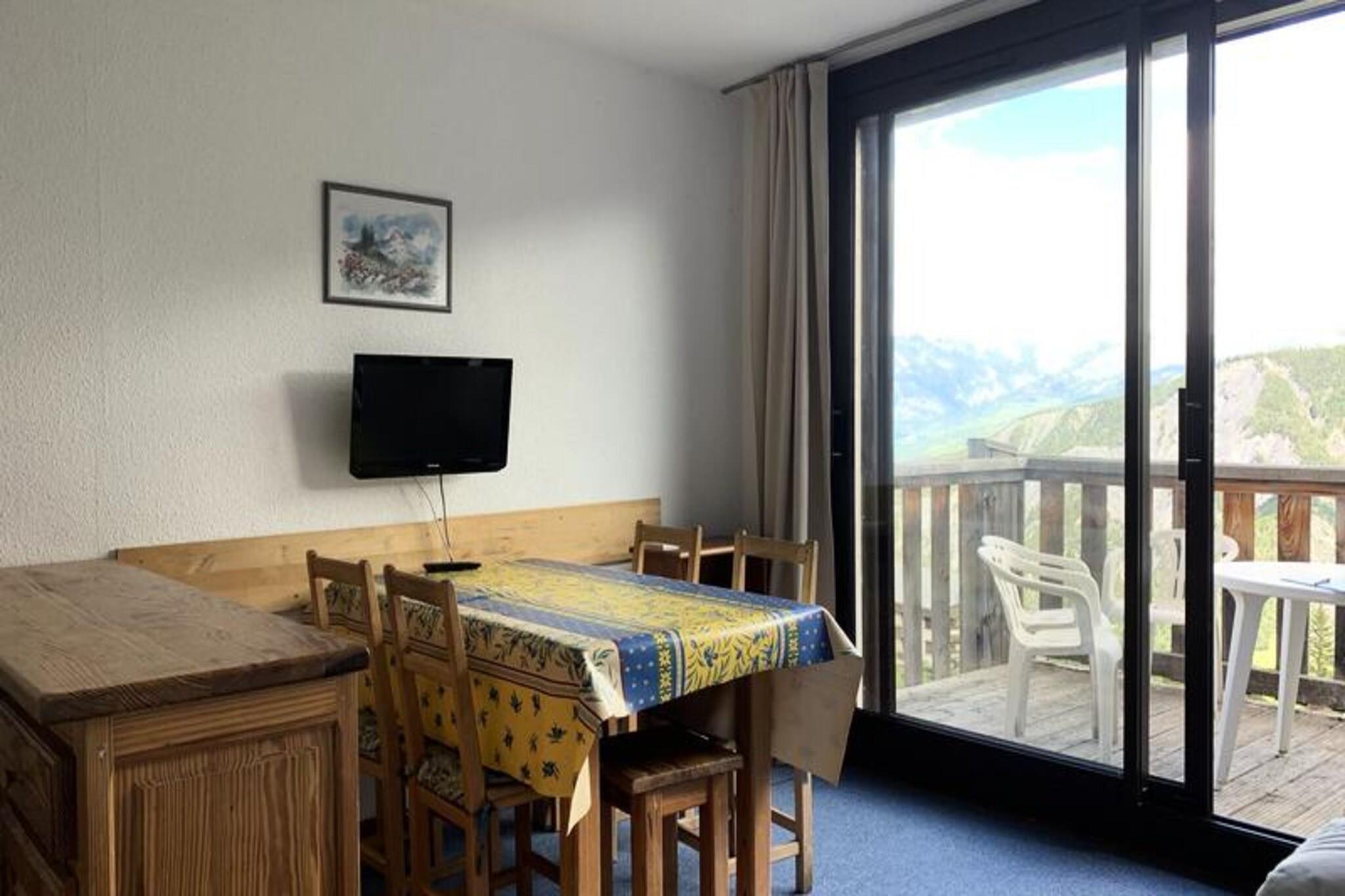 Denne hyggelige studiolejlighed, beliggende i en bygning med elevator, tilbyder et fantastisk ophold i bjergene, perfekt til op til 5 personer. Lejligheden er ideelt beliggende, kun 80 meter fra Molanes stoleliften, og tilbyder nem adgang til skiløb og udendørs aktiviteter. Studiet spænder over cirka 32m², beliggende på 7. sal og er syd/østvendt, hvilket giver mulighed for rigeligt naturligt lys og en smuk udsigt over dalen fra balkonen. Indvendigt har studiet en funktionel indretning med et bjerghjørne med 2 køjesenge og et andet hjørne med 2 ekstra køjesenge. Stuen er udstyret med en 140 cm Clic-Clac sovesofa, HD TV og adgang til altan. Det veludstyrede køkken indeholder køleskab, 4 elektriske kogeplader, kombineret ovn-mikroovn, opvaskemaskine og masser af opbevaringsplads. Badeværelset er udstyret med badekar, og der er et selvstændigt toilet for ekstra bekvemmelighed. Denne ikke-ryger lejlighed tilbyder et rummeligt og lyst miljø, ideelt til en bjergferie. Gæsterne har adgang til en skiboks, og ejendommen er bekvemt placeret i nærheden af ??Molanès-svævebanen. Med sin fantastiske beliggenhed og fuldt udstyrede faciliteter lover denne lejlighed et behageligt og behageligt ophold for dem, der ønsker at udforske Pra-Loup-området.