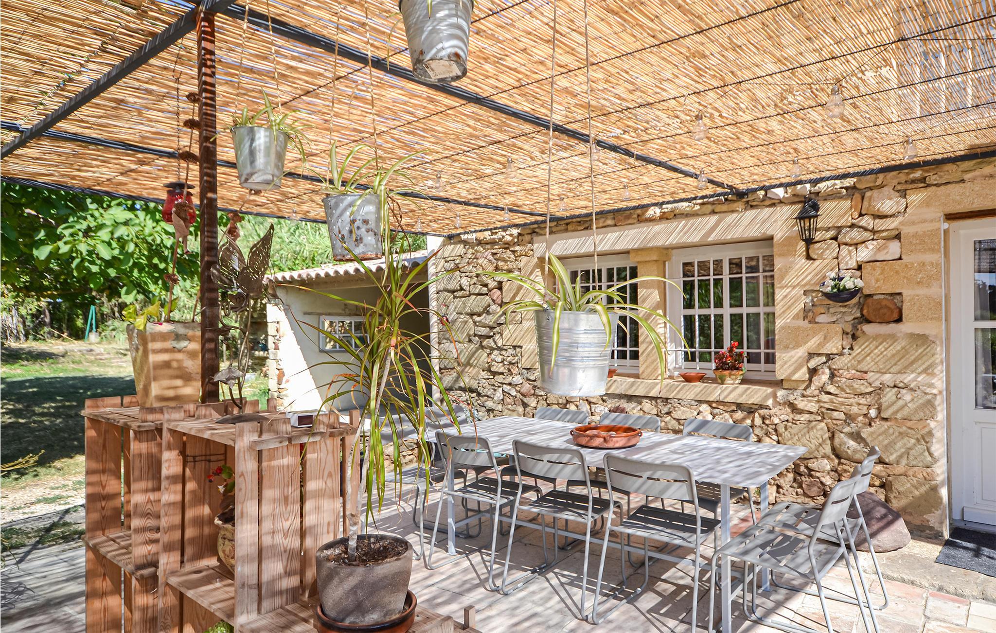 Dette skønne landhus af sten, ligger på en stor grund i skønne omgivelser i Provence. Den store grund er meget ugenert og i haven ligger poolen, som er med til at sikre en vellykket ferie. I huset er der hyggeligt indrettede rum, hvis charme får jer til at føle jer helt hjemme. I bor I udkanten af landsbyen Saint-Quentin-la-Poterie og kun godt fire km fra den unikke middelalderby Uzès. Navnet på turistbyen giver jer en ide om hvad det handler om: I Saint-Quentin-la-Poterie er der mange pottemagere, som I kan se arbejde og hvis potter I kan få lov at købe. Lige så interessant for store og små er den store bambushave i Anduze, ligesom Nîmes og Avignon er værd at besøge. Vi kan også anbefale en tur i kano på Gardon. Et af soveværelserne har eget bad en suite.