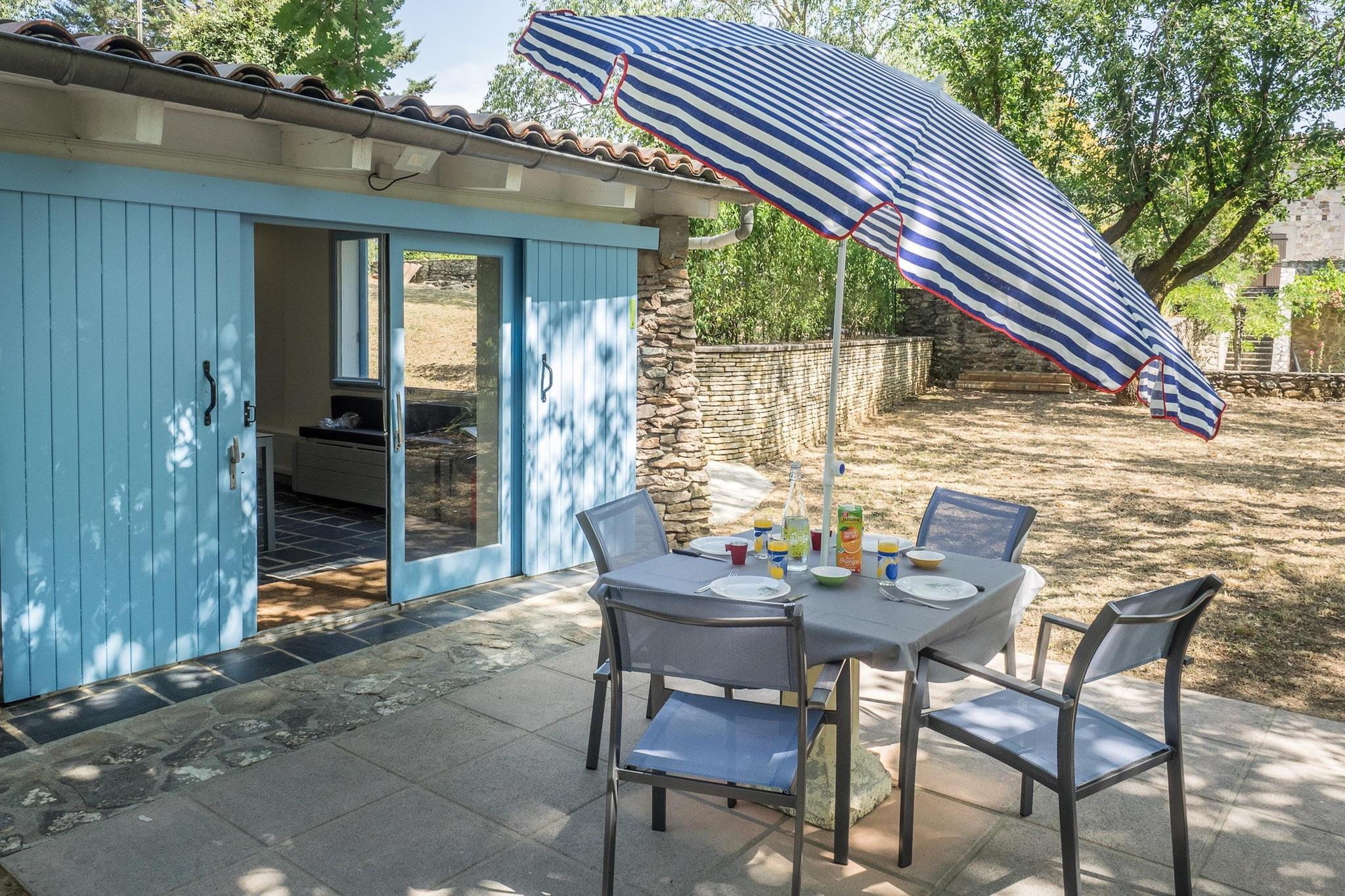 Dette hyggelige oase på landet er beliggende i en skovklædt ejendom med en flot udsigt over bølgende bakker og Boude-floden. Ideel til par eller små familier, den har et soveværelse med en dobbeltseng og en enkeltseng samt en sovesofa i loungen. Den private terrasse og rummelige have byder på fredfyldte steder at slappe af, mens den saltbehandlede opvarmede pool (min. 24°) med liggestole og en overdækket spiseplads tilføjer et strejf af luksus. Kun en kort gåtur til Uzers centrum?lokale? finder du frisk brød, croissanter og daglige fornødenheder. Til spisning kan du prøve Pizzaria-snacks Lisboa til afslappede retter, La Châtaigneraie til raffinerede måltider eller Le FAZAO i Balazuc for charme ved floden. Barer som La Fan-Lou tilbyder hyggelige drinks i nærheden. Haveelskere kan udforske Jardins suspendus eller Les Jardins de Chanabier for rolige gåture. Nærliggende attraktioner omfatter middelalderbyerne Largentière og Balazuc, kanosejlads i Gorges de l'Ardèche og naturskønne strande langs floden. Uanset om du slapper af ved poolen eller udforsker Ardèches naturlige skønhed, tilbyder denne hytte en fredfyldt og velforbundet flugt.