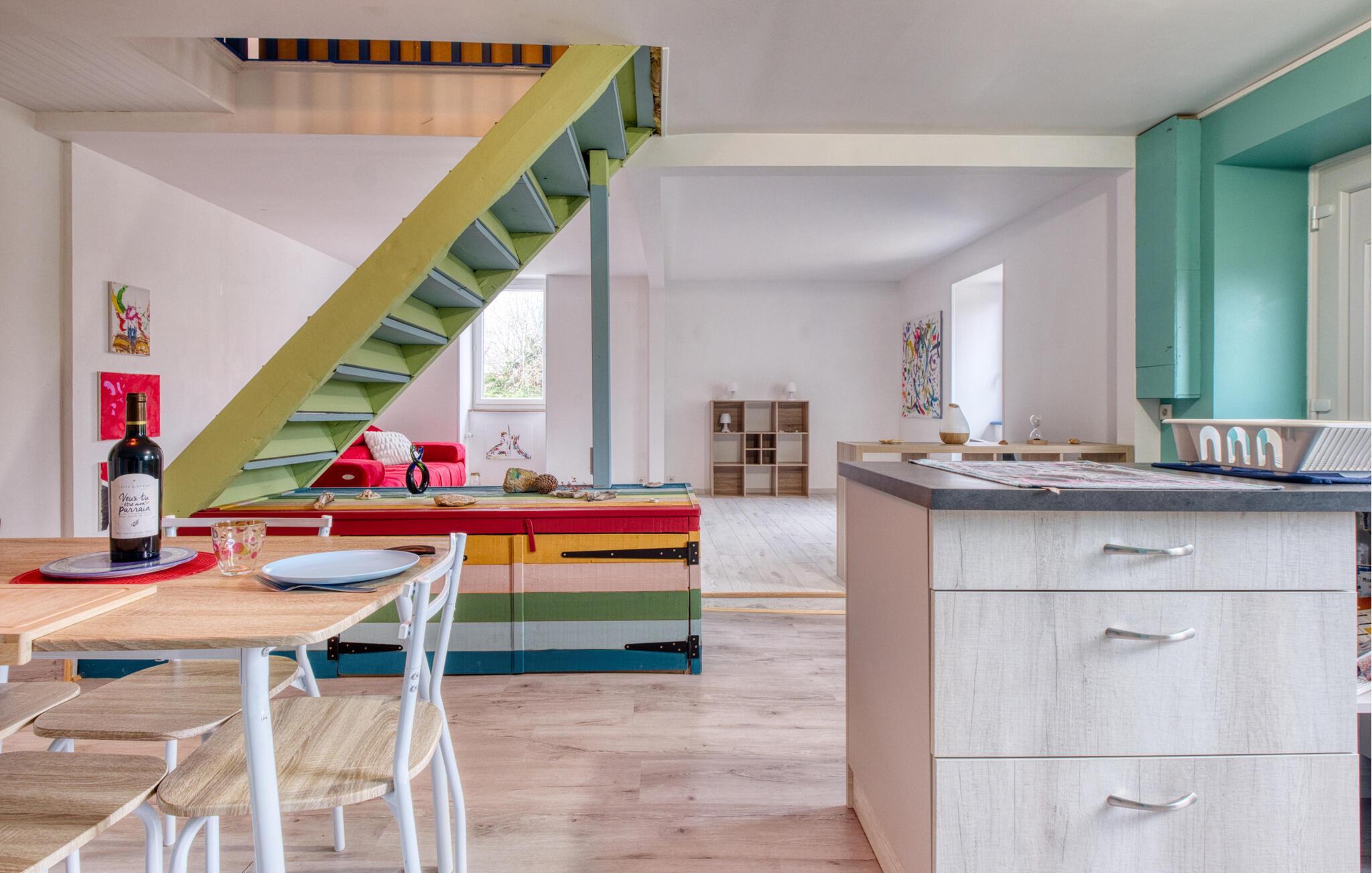 I dette rummelige og familievenlige hjem vil I blive budt velkommen af ??et indbydende og farverigt interiør. Fremstil lækre retter med friske råvarer fra markedet i det åbne køkken, og planlæg aktiviteterne over harmoniske måltider ved spisebordet. Efter en lang dag inviterer den komfortable sofa jer til at slappe af og læse eller nyde en hyggelig spilleaften.