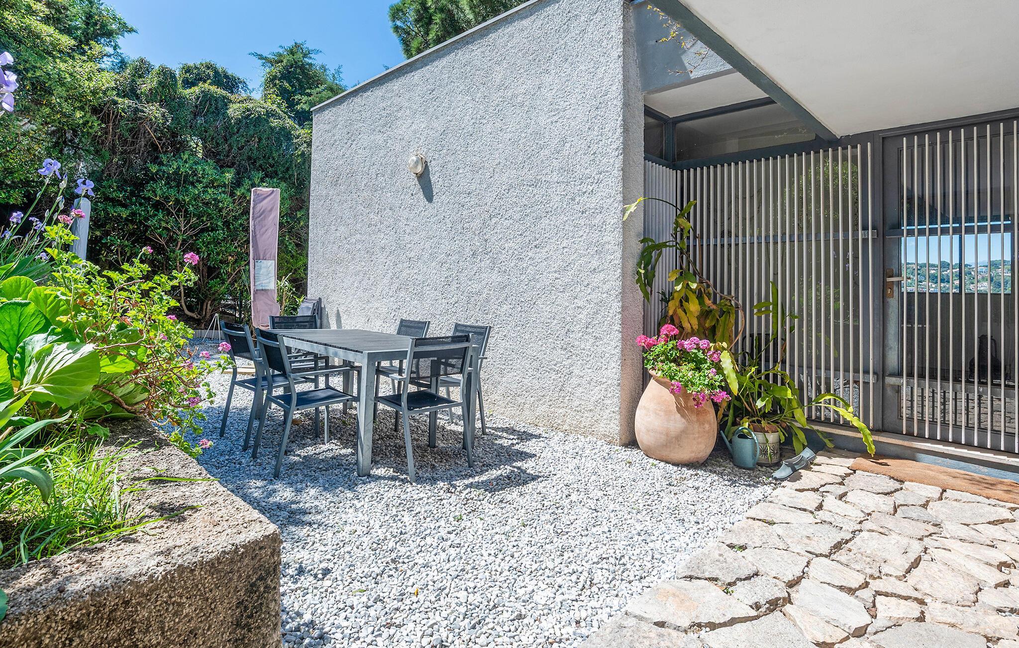 Dette rummelige feriehus i californisk stil byder jer velkommen med en lys og middelhavsagtig atmosfære og giver jer mulighed for at nyde den charmerende Côte d'Azur fuldt ud. Dens let hævede beliggenhed og store vinduer giver jer en smuk udsigt over landskabet, mens I tryller middelhavsretter frem eller slapper af på stilfulde møbler i stuen.