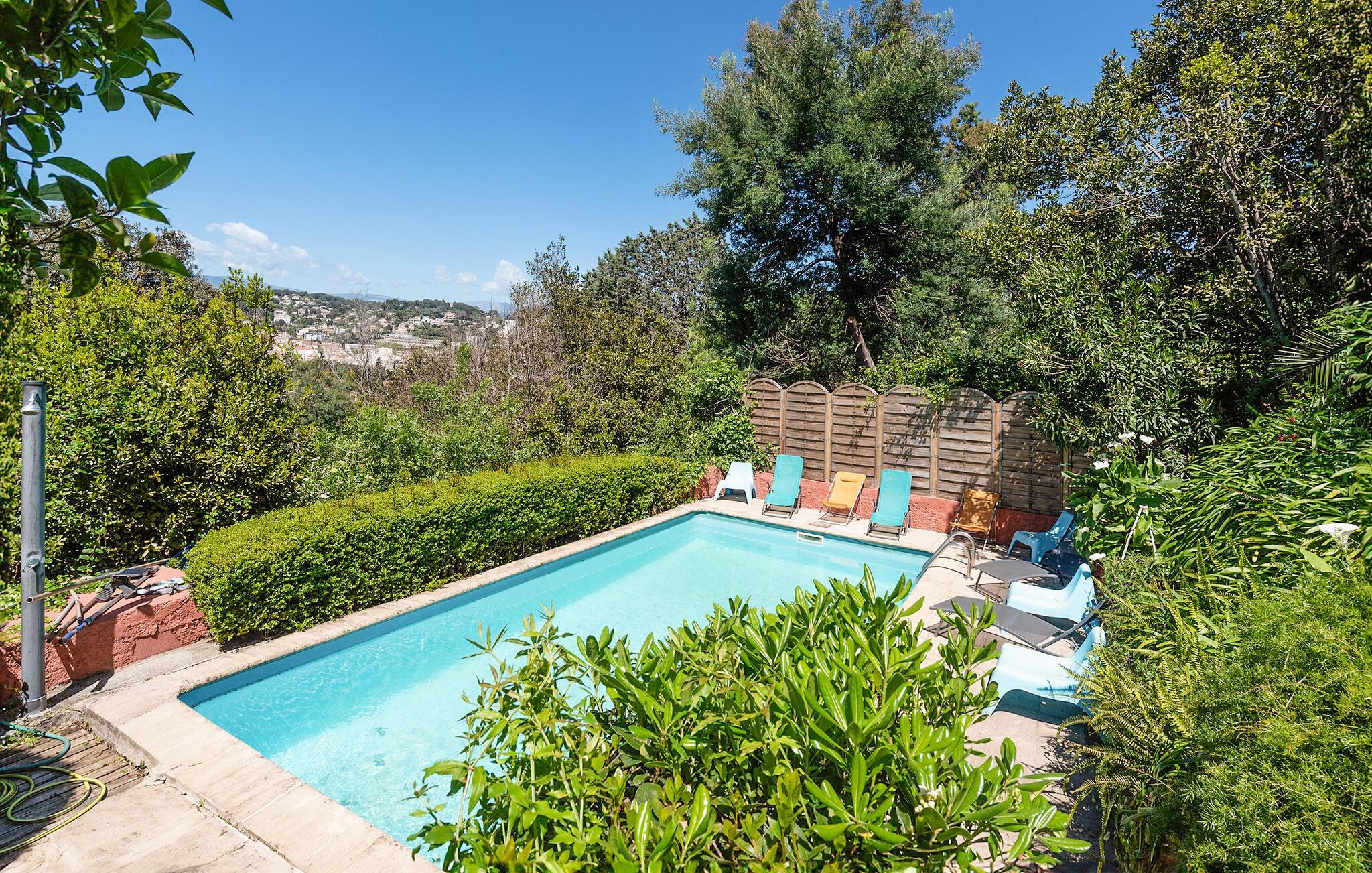 Tilbring en solrig ferie i dette rummelige feriehus med pool og panoramaudsigt.