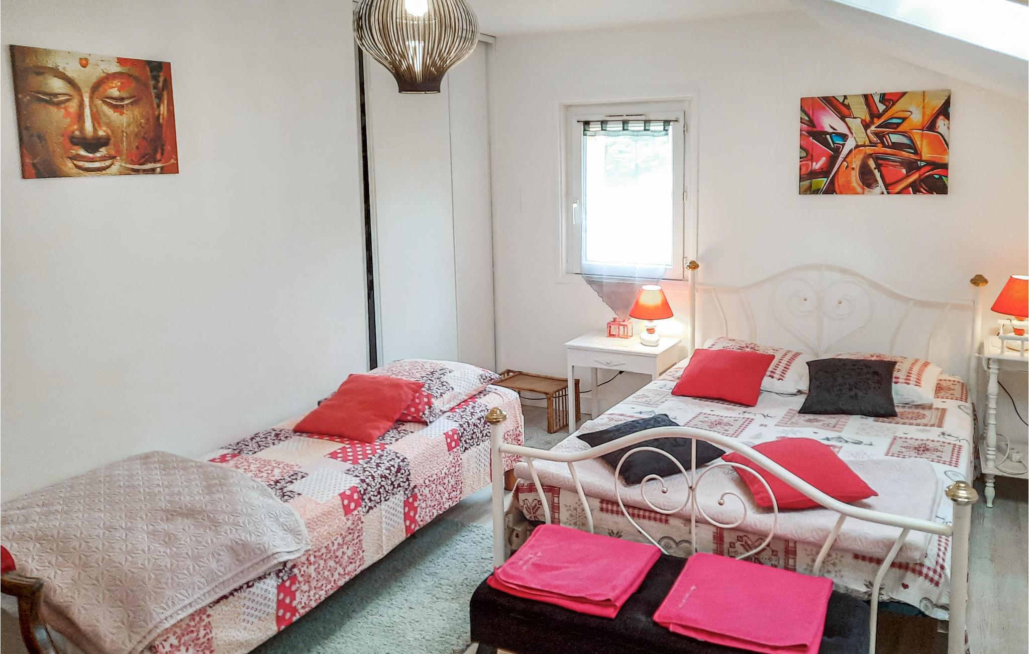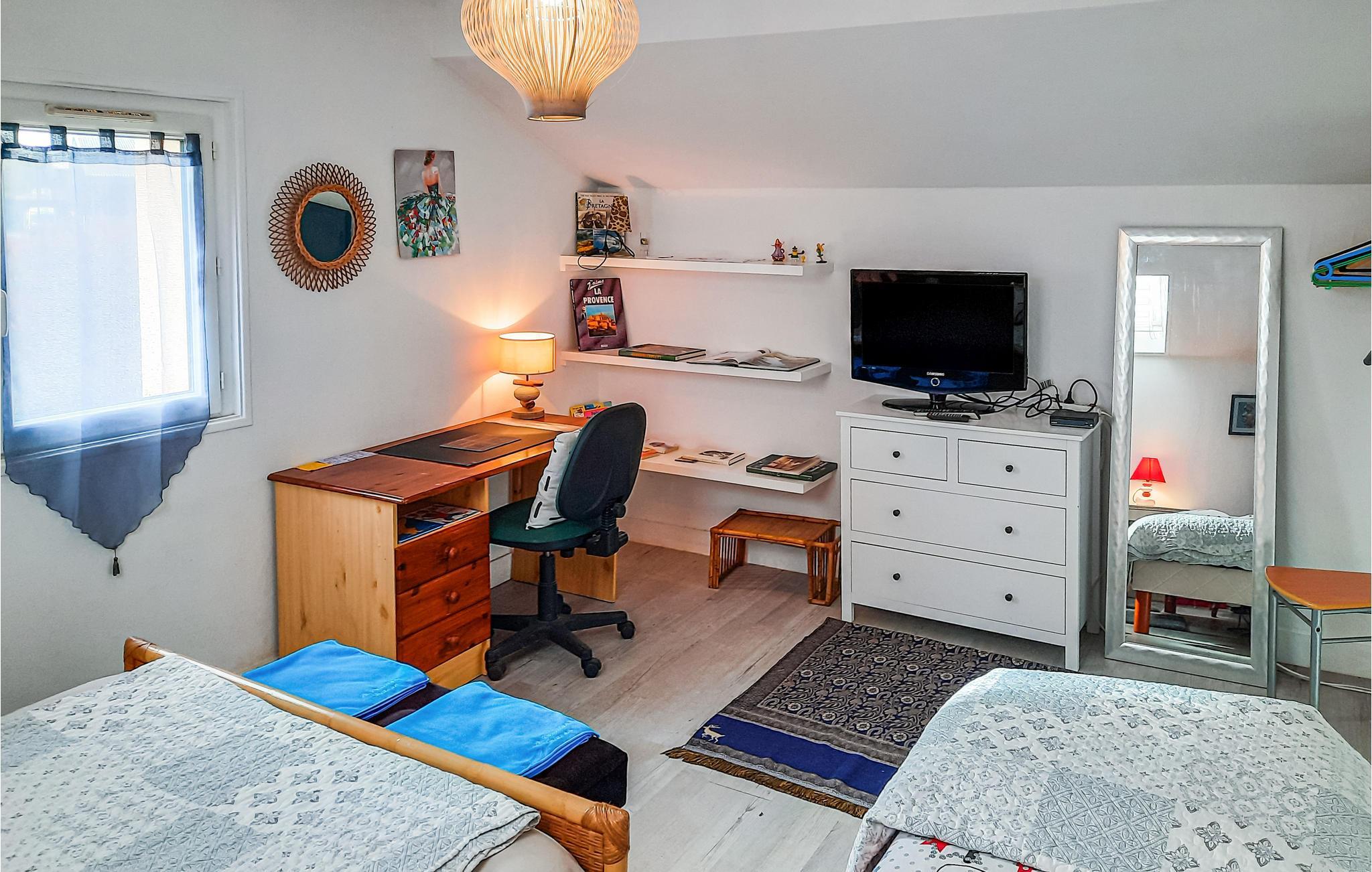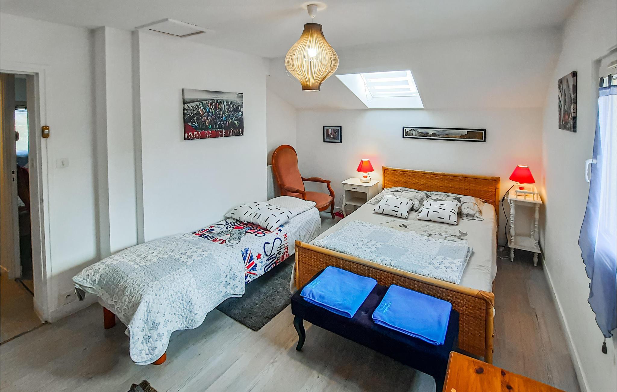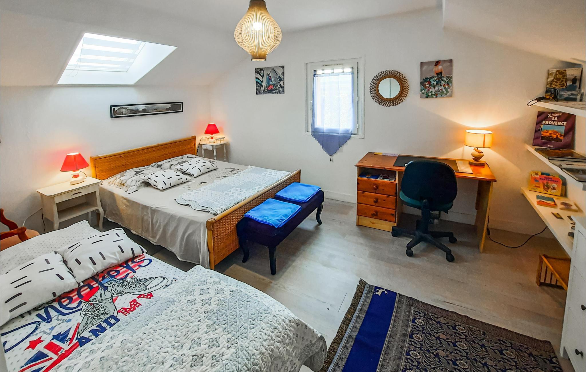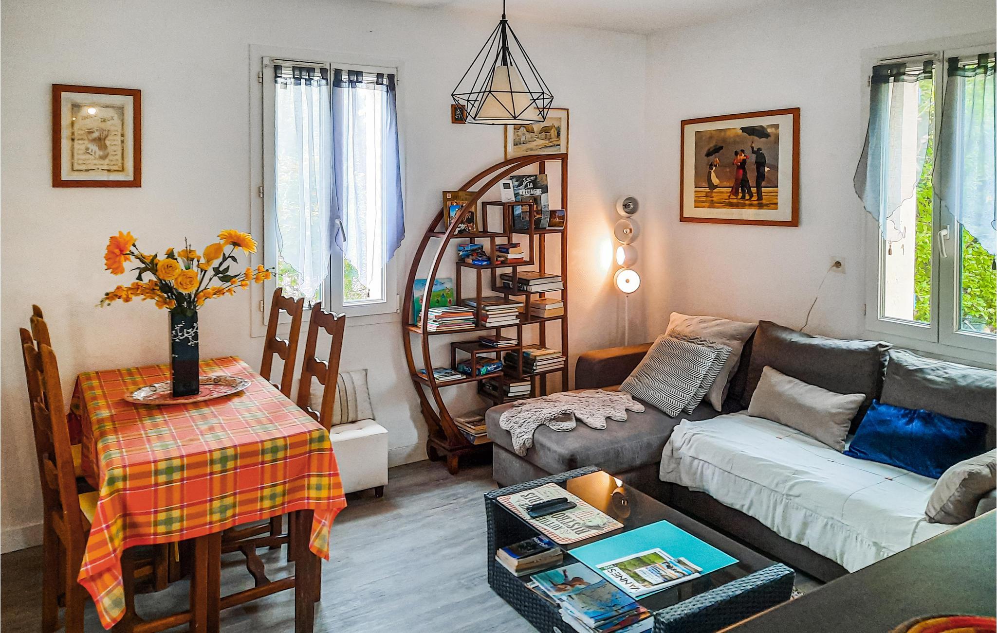 Dette charmerende feriehus byder jer velkommen i udkanten af Vannes og giver jer en hyggelig base til en oplevelsesrig ferie sammen med venner eller familien. Føl jer hjemme, mens I tilbereder jeres livretter i det lyse køkken og nyder hyggelige måltider i den komfortable opholdsstue. Kryb sammen på sofaen om aftenen, og slut dagen af med en god bog eller et brætspil.