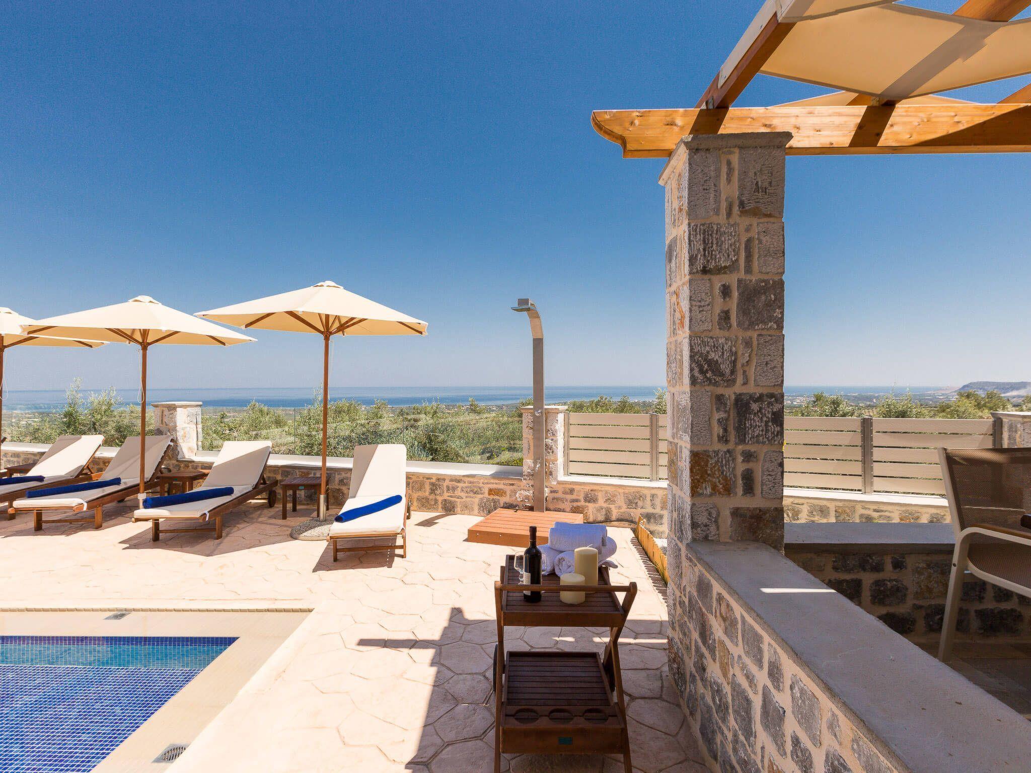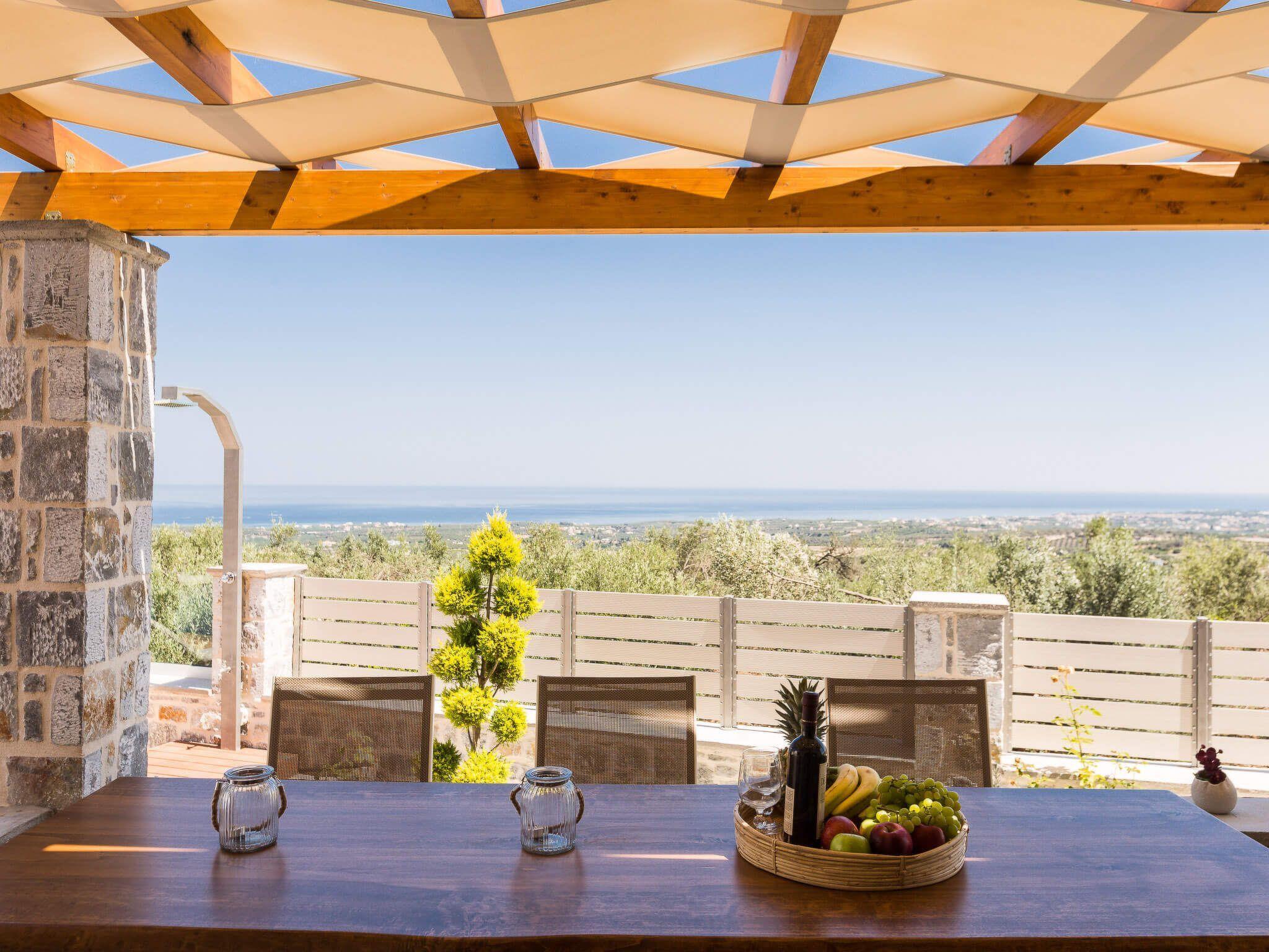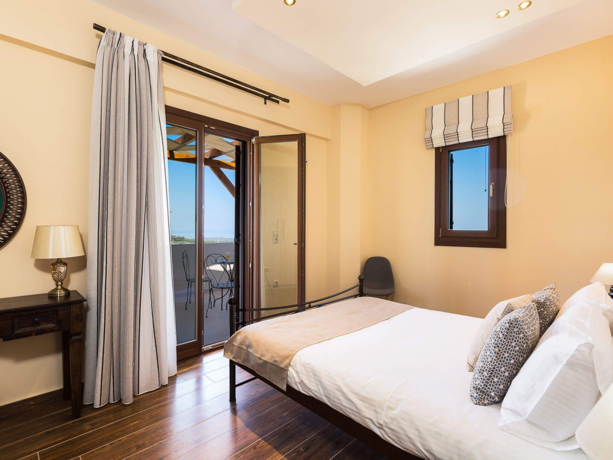 At last, a villa you can calm and spend your personal time away from everything and focus only on those you choose or love. Your family or friends will be glad for an exquisite holiday home in Crete that is only 7 kilometers away from the nearest sandy beach. It is located between the largest cities of Crete and can be an ideal choice for your daily excursions of exploration. Villa Kantifes was built in 2018 and is designed to provide comfort and ergonomics for every visitor, without any aversion to aesthetics. On the outdoors there is a sea view and you can enjoy it as you sunbathe from the pool. It has a terrace with outdoor furniture and a barbecue area. On the ground floor there is a comfortable lounge with large flat-screen TV, banquet and a kitchen with a breakfast table and all modern amenities. In the ground floor the color of wood dominates in a timeless minimalist style. Cozy curtains decorate the windows and offer privacy when it is required. The house can accommodate up to 5 guests in its two bedrooms, with one double bed in one room and three single beds in the other (they can be converted in to double bed and a single bed on request). The bedrooms are located on the first floor and have two balconies with a shelter and awesome green and sea views. Check out is 11:00 latest and check in is 15:00 earliest.