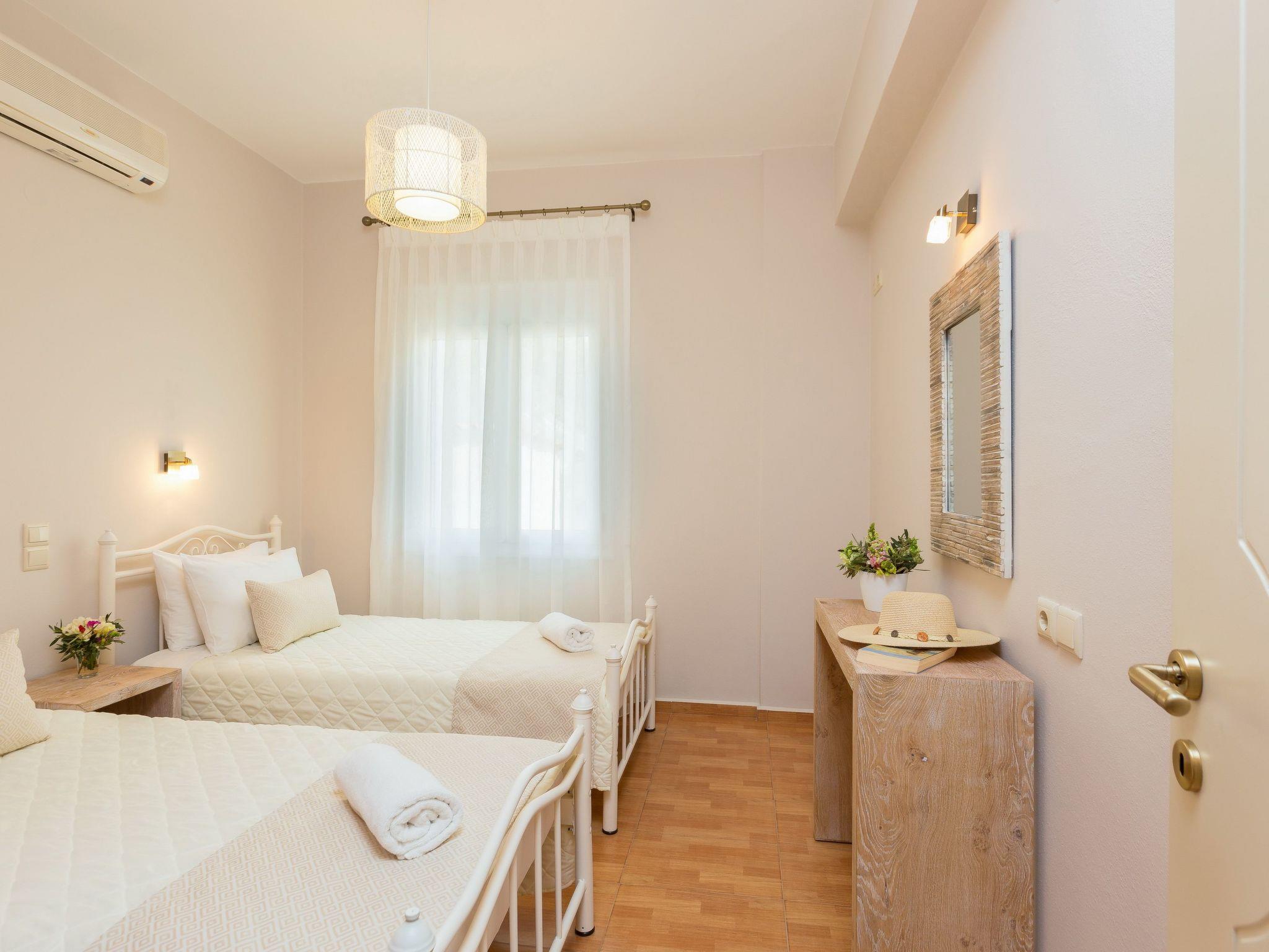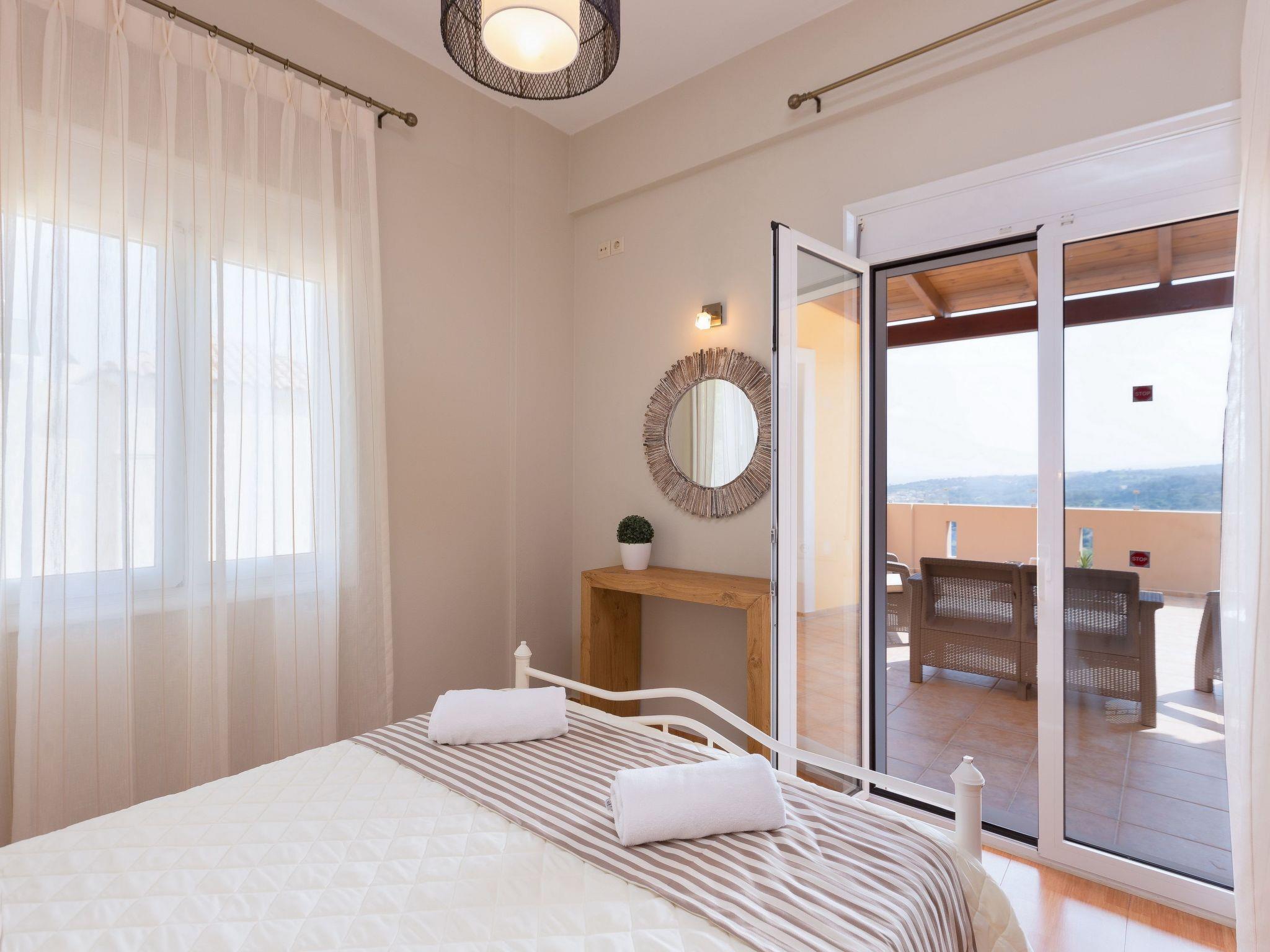 Eros Villa is a convenient three bedroom villa ideal for family vacation, nature activities and calm away from everything, but at the same time, being near to Rethymno town and the beach. Eros Villa is holding the key to unlock a truly hospitality and authentic Cretan experience with your family or friends. Discover the absolute carelessness and relaxation you desire in this spacious clean villa with pool and great views of the olive groves, gazing the stunning countryside and Cretan Sea. Entering Eros Villa you will find an open plan living area that offers direct access to the pool terrace, with a living room and an open fireplace, as well as a practical and fully equipped kitchen with dining table. The ground floor includes a twin bedroom and a bathroom, while a few stairs upwards there are the two remaining bedrooms of the villa with a balcony, and a family bathroom. Cool and shady inside, outside there is a lovely pergola with BBQ and pool terrace opened to amazing views, equipped with sun beds and umbrellas, offering ample opportunity for all day long to sunbathing and relaxing. The kid’s playground and kid’s pool are great to keep the little members of the family entertained, while you can finally unwind sitting with your favorite book, after spending a busy day on the beaches and colorful backstreets of Rethymno’s Old Town.