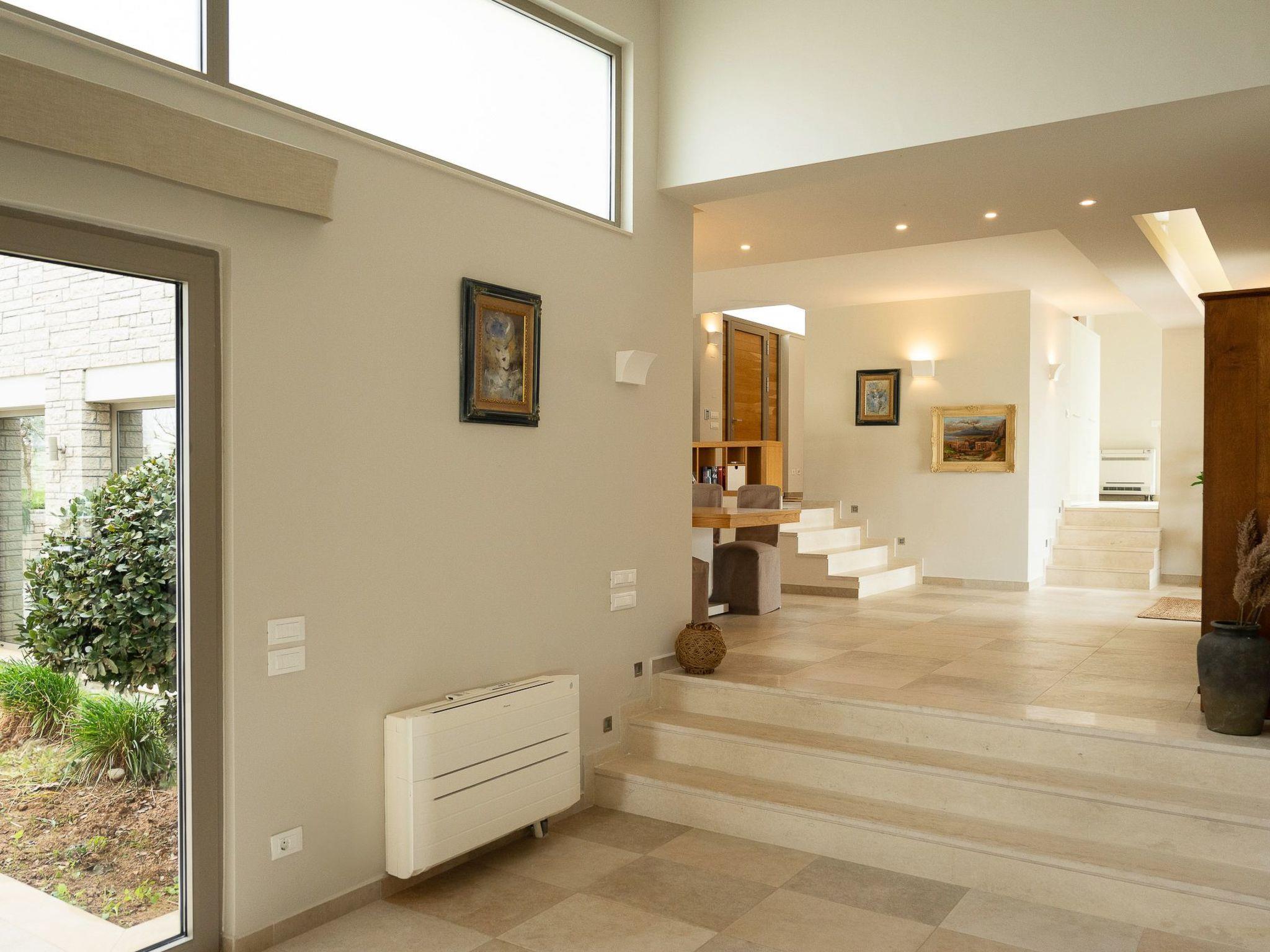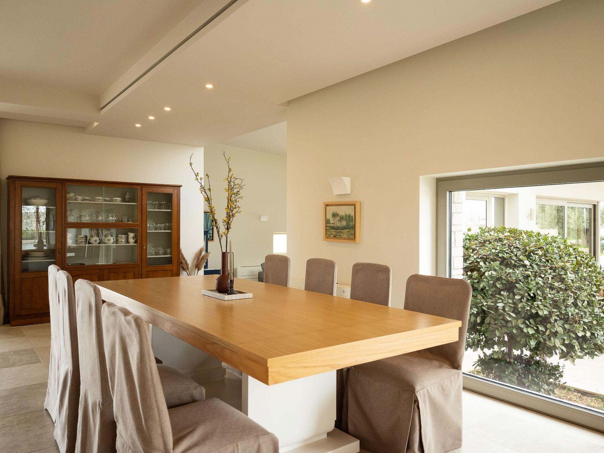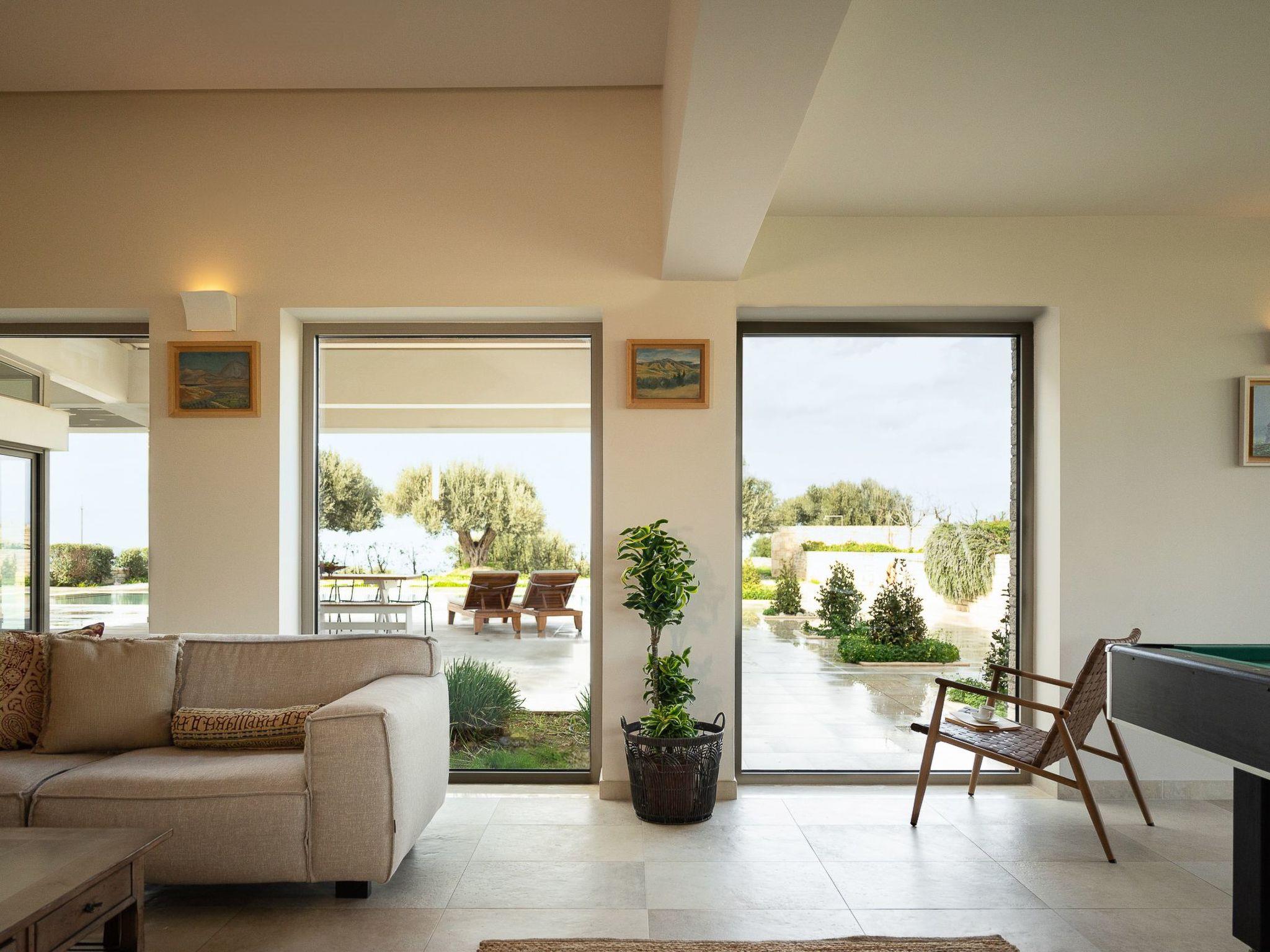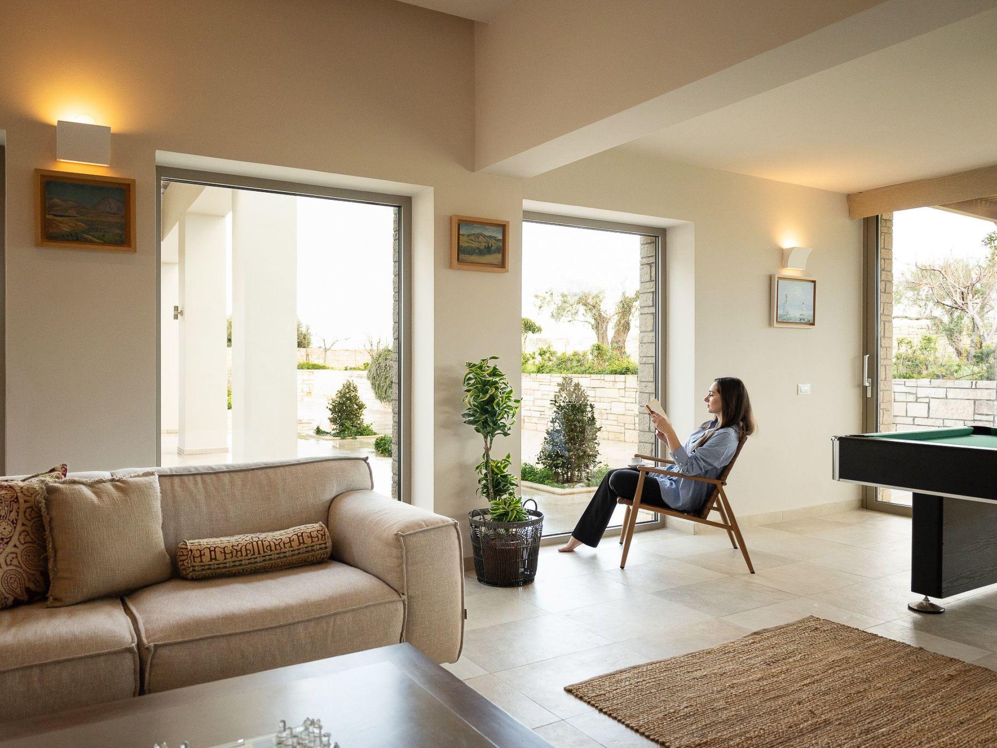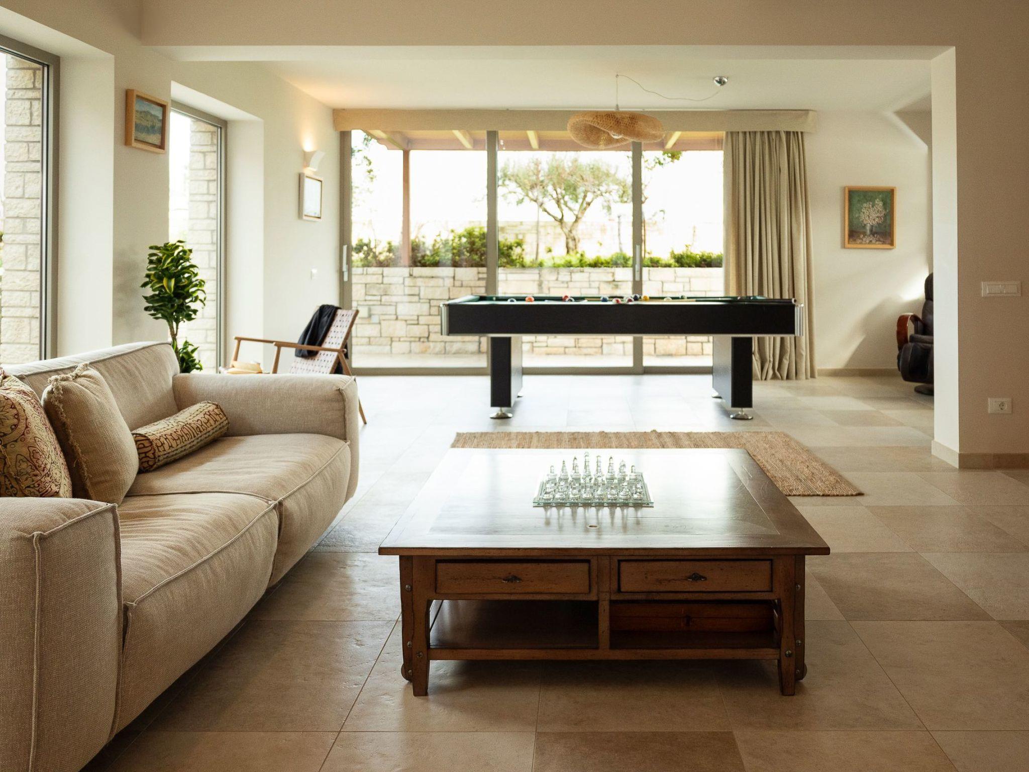 Inside, the villa shines with a plethora of modern conveniences and thoughtful touches. Across five bedrooms and four bathrooms, equipped with both showers and a bath tub with shower, guests will find personal oases conducive to rest and relaxation. Air conditioning throughout ensures a cool respite from the sun's warmth. Entertainment is never in short supply with features like a billiards table, games console, and renewable energy-powered amenities including a dishwasher, washing machine, clothes dryer, and various coffee machines from espresso to capsule ones, ensuring every need is met with a blend of efficiency and pleasure.