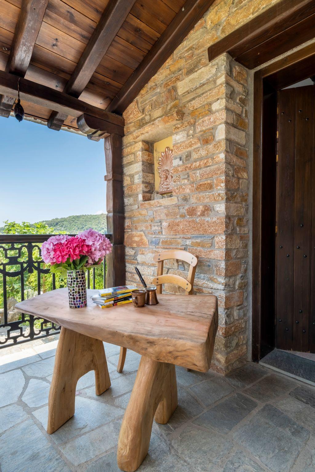 Discover the idyllic peace and beauty of Milies in central Greece in this welcoming holiday home, ideal for up to 8 guests. In perfect harmony with the traditional architecture of Pelion, which combines stone and wood, this house offers all the necessary comforts for an unforgettable stay. From the roof terrace to the spacious veranda, an ambience of relaxation awaits you here with views of the mountains, sea and valley.