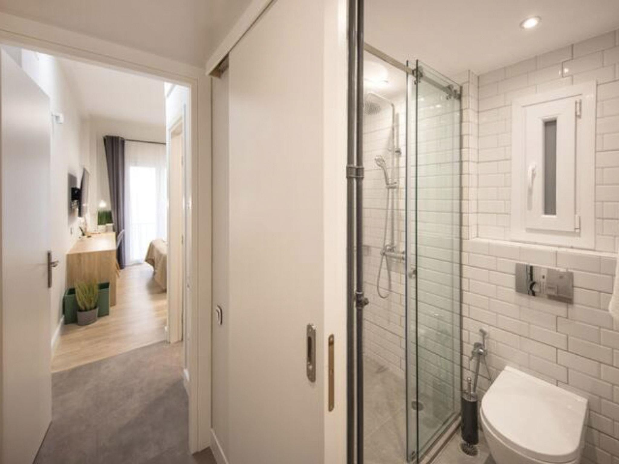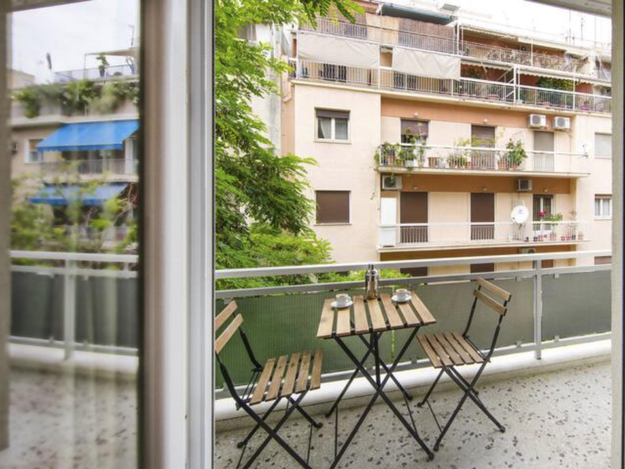 Step outside onto the small balcony, an idyllic spot for sipping your morning coffee or enjoying breakfast with a breath of fresh air. The apartment’s exterior blends seamlessly with the bustling Athens streets, inviting you to immerse yourself fully in the city's vibrant life from the moment you step outside.