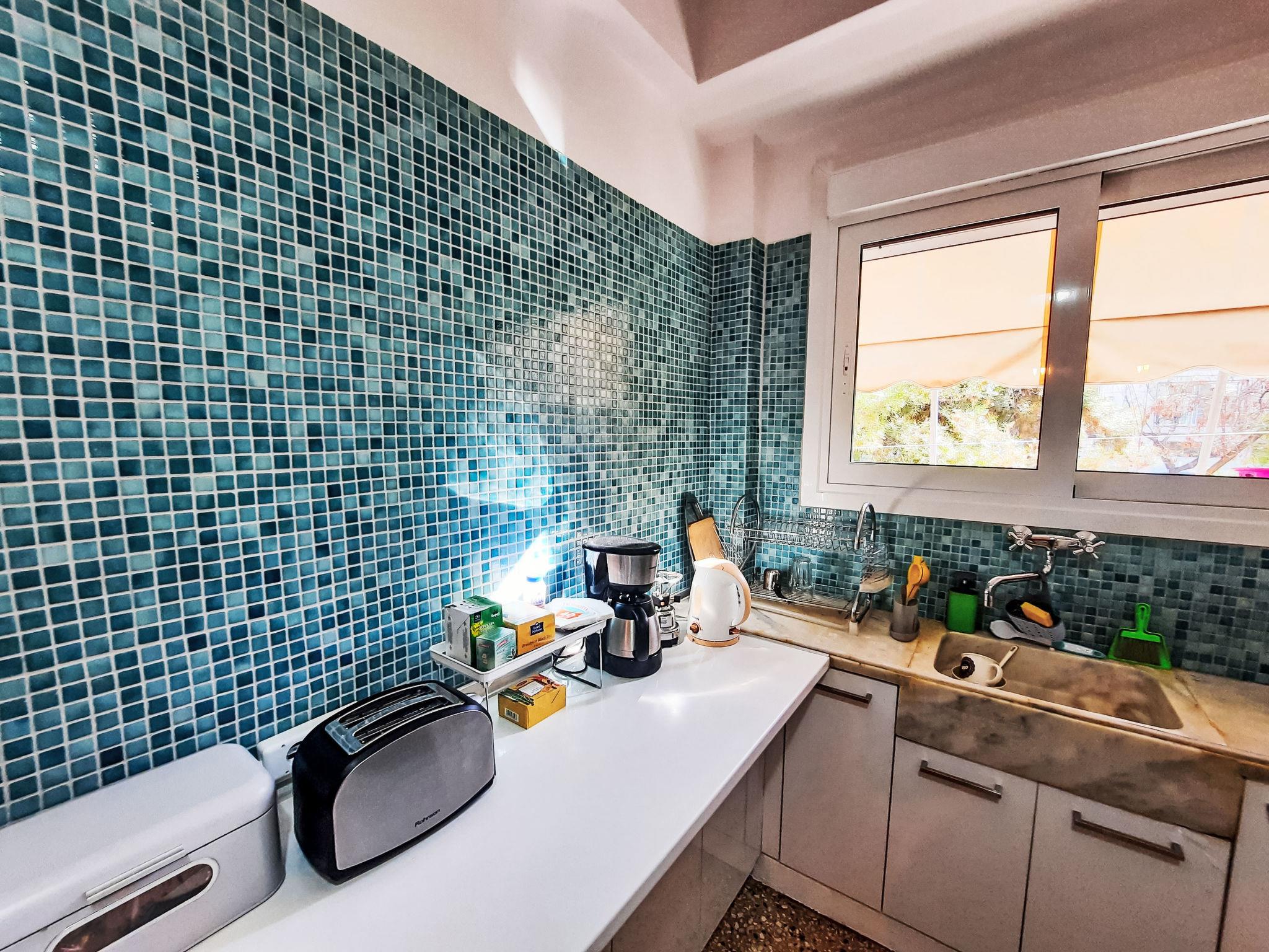Apartment house, 5 storeys, built in 1980. In the centre of Athens, in a central, busy position. Public parking on the road. Grocery, supermarket 350 m, restaurant 500 m, bus stop 1 km, railway station 3 km. Please note: not suitable for small children. The owner does not accept any groups. The owner does not accept any youth groups. Railway line closeby.