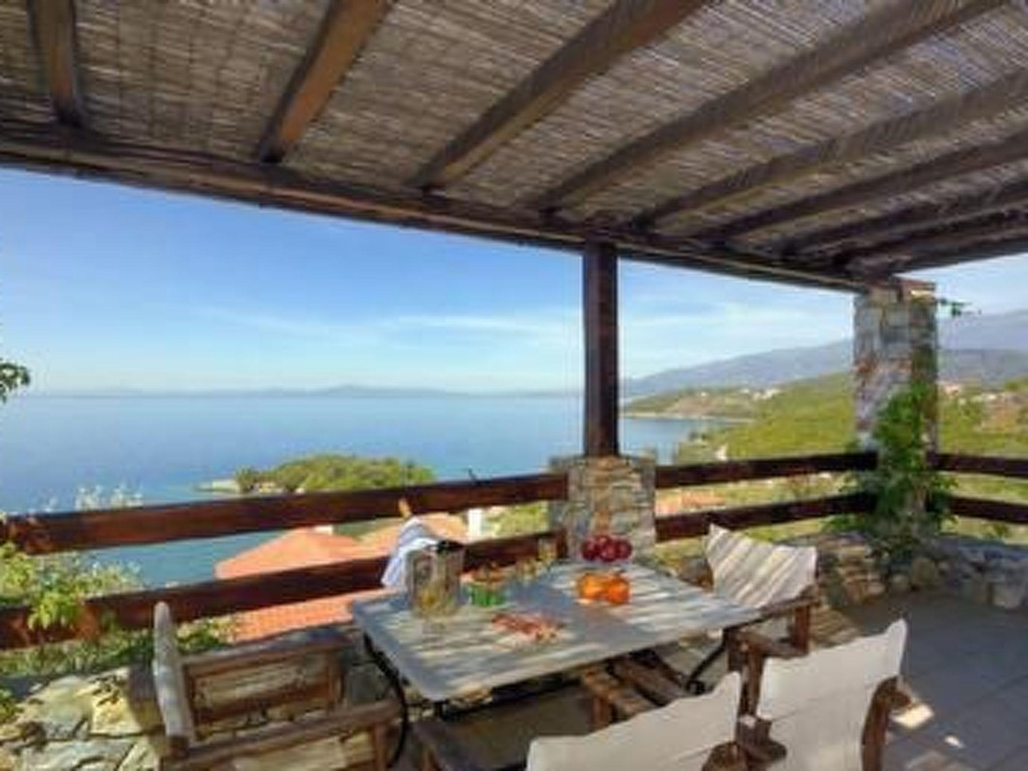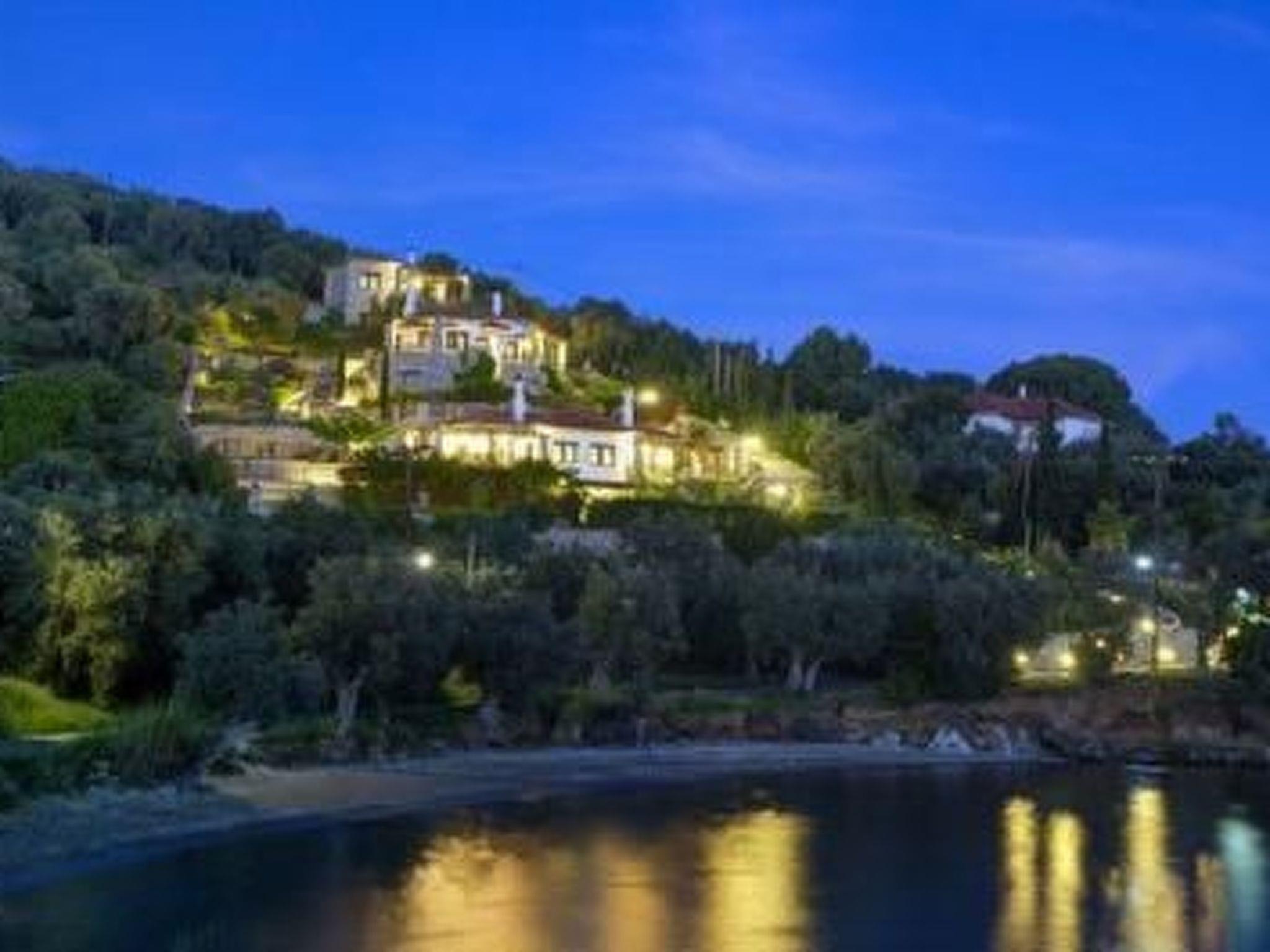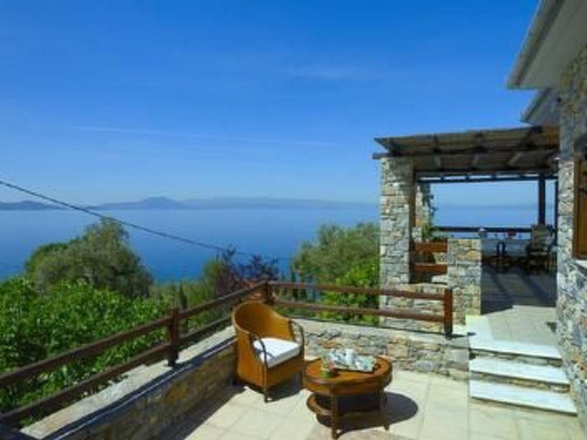 It is situated on a slope and you have a very beautiful panoramic sea view from everywhere.