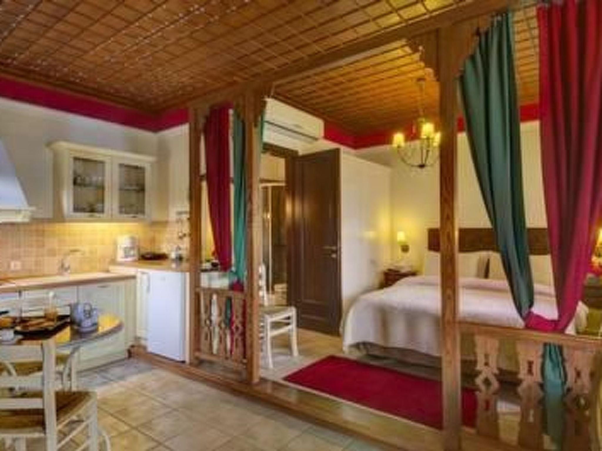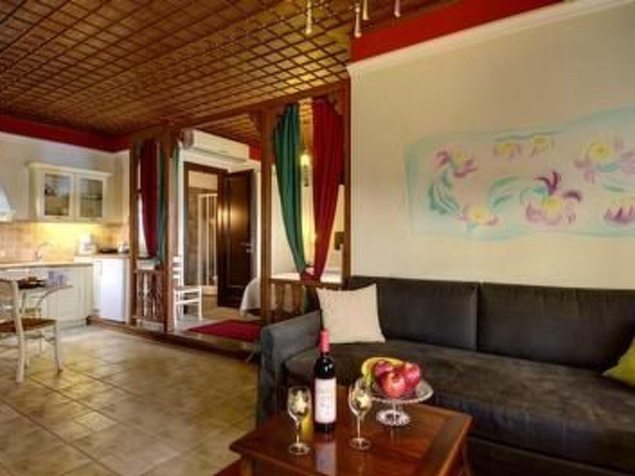 5 flats - each for 2-3 persons (two of them are also suitable for 2 adults + 2 children): Each flat is very tastefully and modernly furnished. The whole flat practically consists of one room. The sleeping area with a double bed is separated from the rest of the flat either by a counter or by curtains. The living room has a large sofa bed, fireplace, TV, heating, very well-equipped kitchenette, dining table with 4 chairs, shower/WC, terrace (20 square metres) with garden furniture and sea view.
