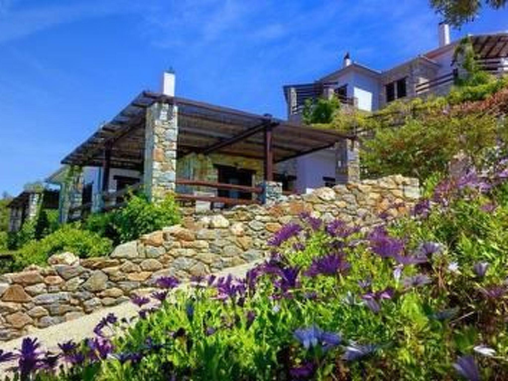 It is situated on a slope and you have a very beautiful panoramic sea view from everywhere.