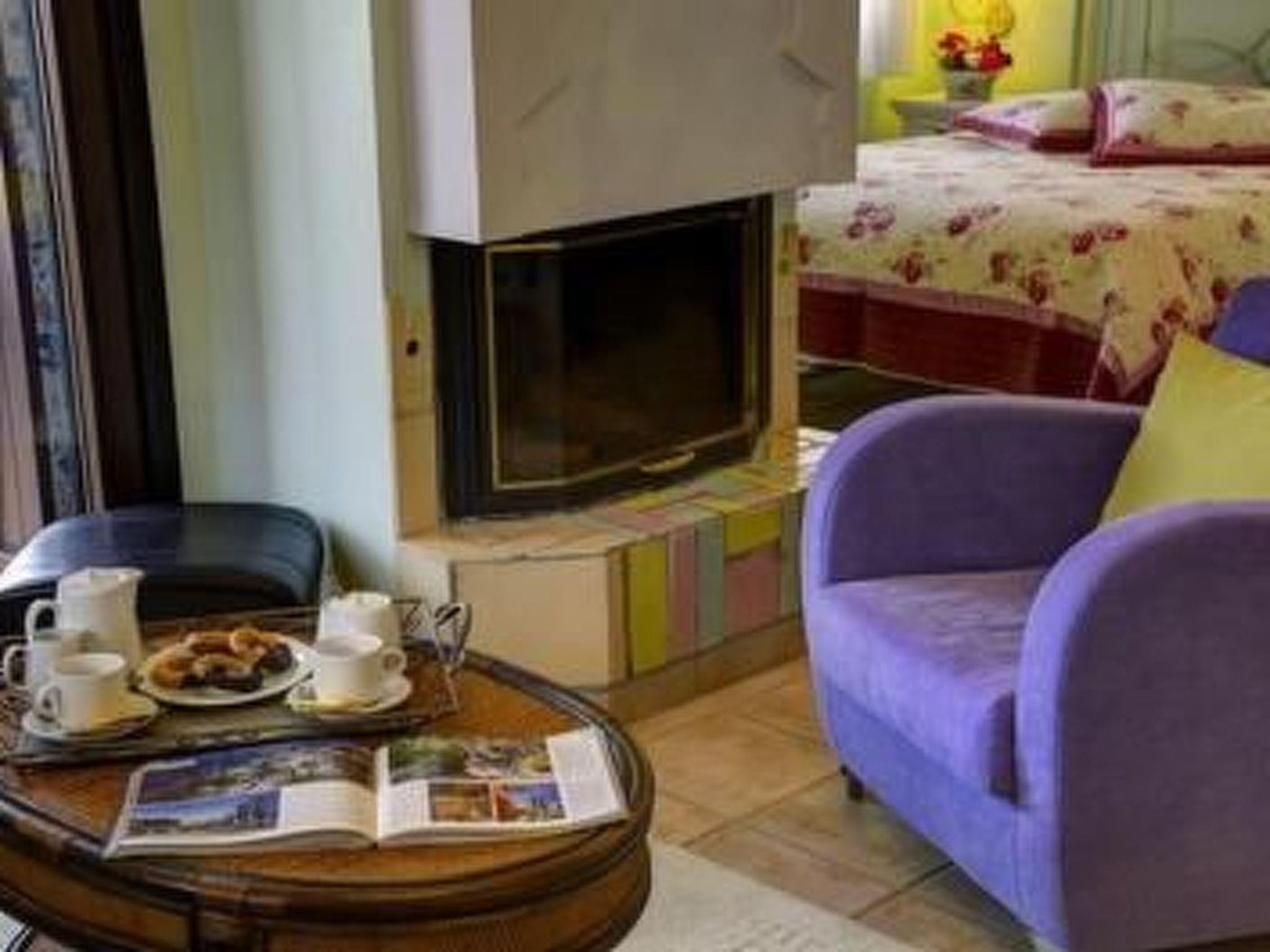 - Living area with fireplace and seating set