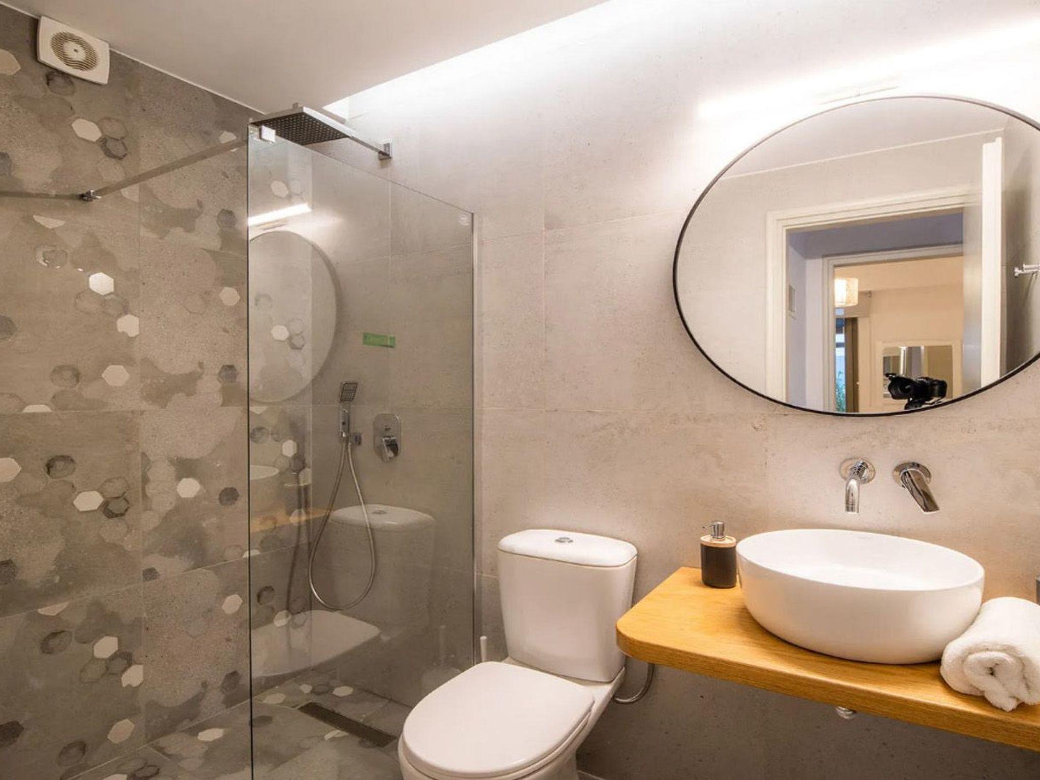 This tastefully furnished suite is located on the first floor and has an area of 40 square metres. It is ideal for 4 persons and offers a private terrace with a marvellous sea view and a balcony also with garden furniture and sea view. The suite offers the following amenities: