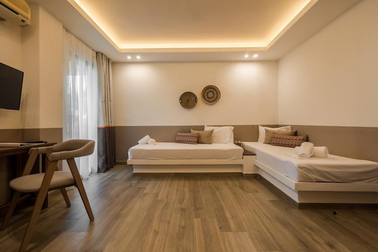 Fuldstændig renoveret og udvidet feriekompleks i 2019 midt i en smukt bevokset have med swimmingpool og en fantastisk havudsigt. Sandstranden Gerakini, som ligger kun 300 meter væk, kan nemt nås via en underføring. En daglig morgenmad er inkluderet i lejeprisen! I hotellets restaurant kan du spise i komfort og nyde solnedgangen med en kølig drink. Centrum af Gerakini med butikker, taverner og barer kan nås på få minutters gang. På grund af sin centrale beliggenhed er alle tre halvøer let tilgængelige. Detaljer: Daglig WiFi morgenmad Ikke egnet til personer med nedsat mobilitet