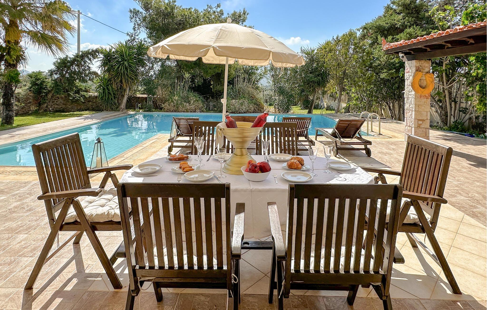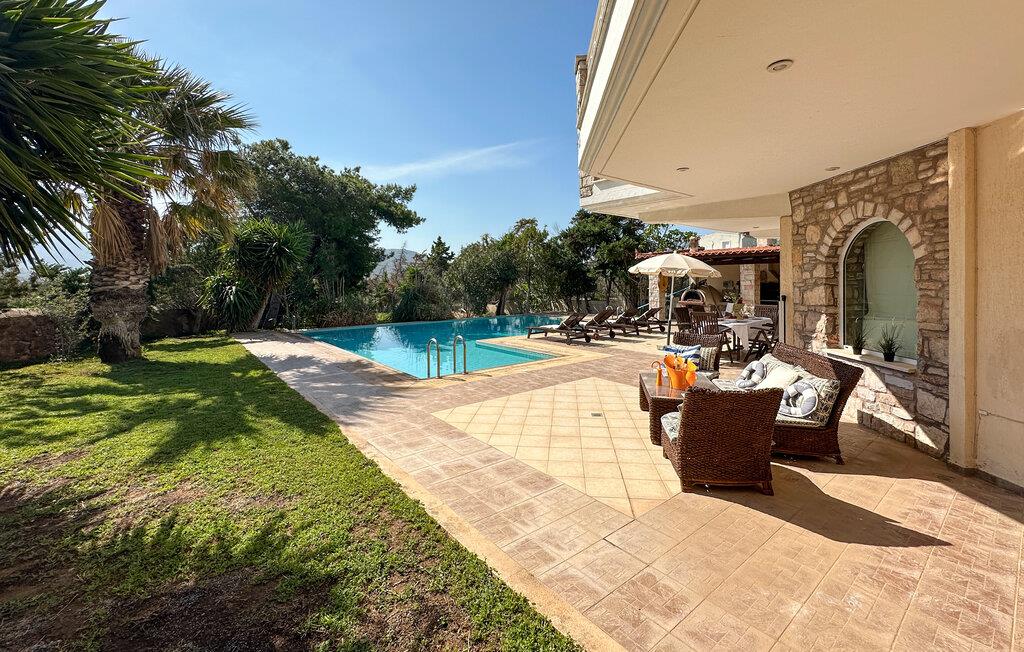 Gå ud på terrassen og nyd solen mod en magisk baggrund; Det er også det ideelle sted til en dejlig grilleftermiddag. Forfrisk jer selv i poolen, som I ønsker.