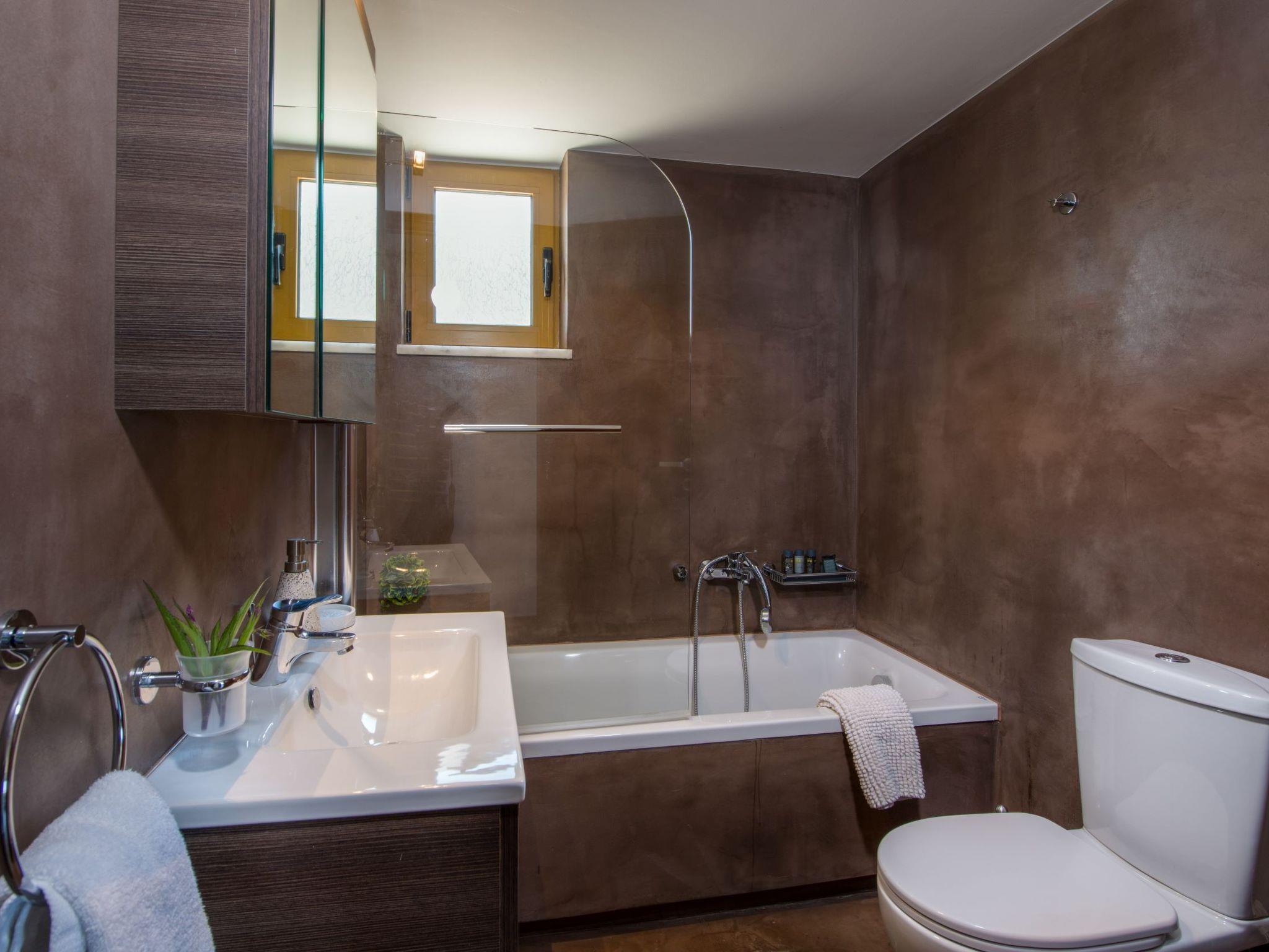The generous outdoor area features a heated, private pool with deckchairs, from which you can enjoy the wonderful view over the landscape. Next to it there is a roofed grill area surrounded by lush green lawns, where you will fing further seating. The upper terrace with some roofing and light is quite large and also has a dining table with chairs. It is possible to park on site.