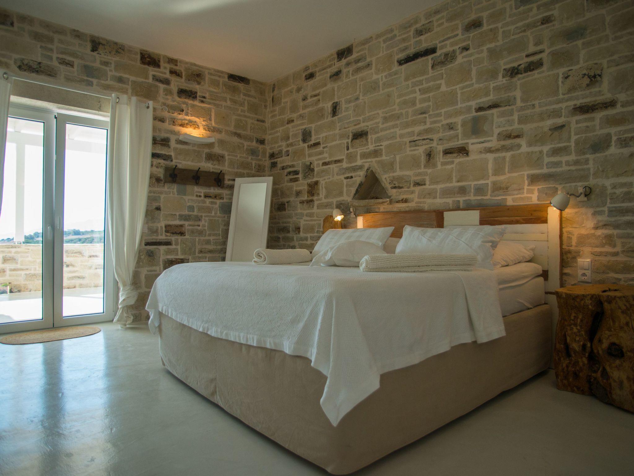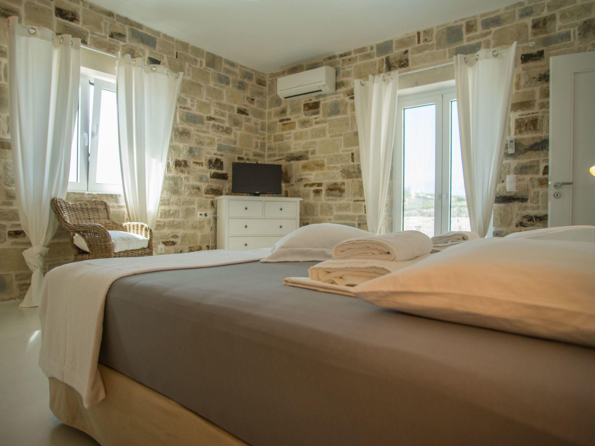 Villa Inia, beach house, natural stone villa in a top location with a fantastic view of the sunset in the Libyan Sea, olive groves and the Ida Mountains.