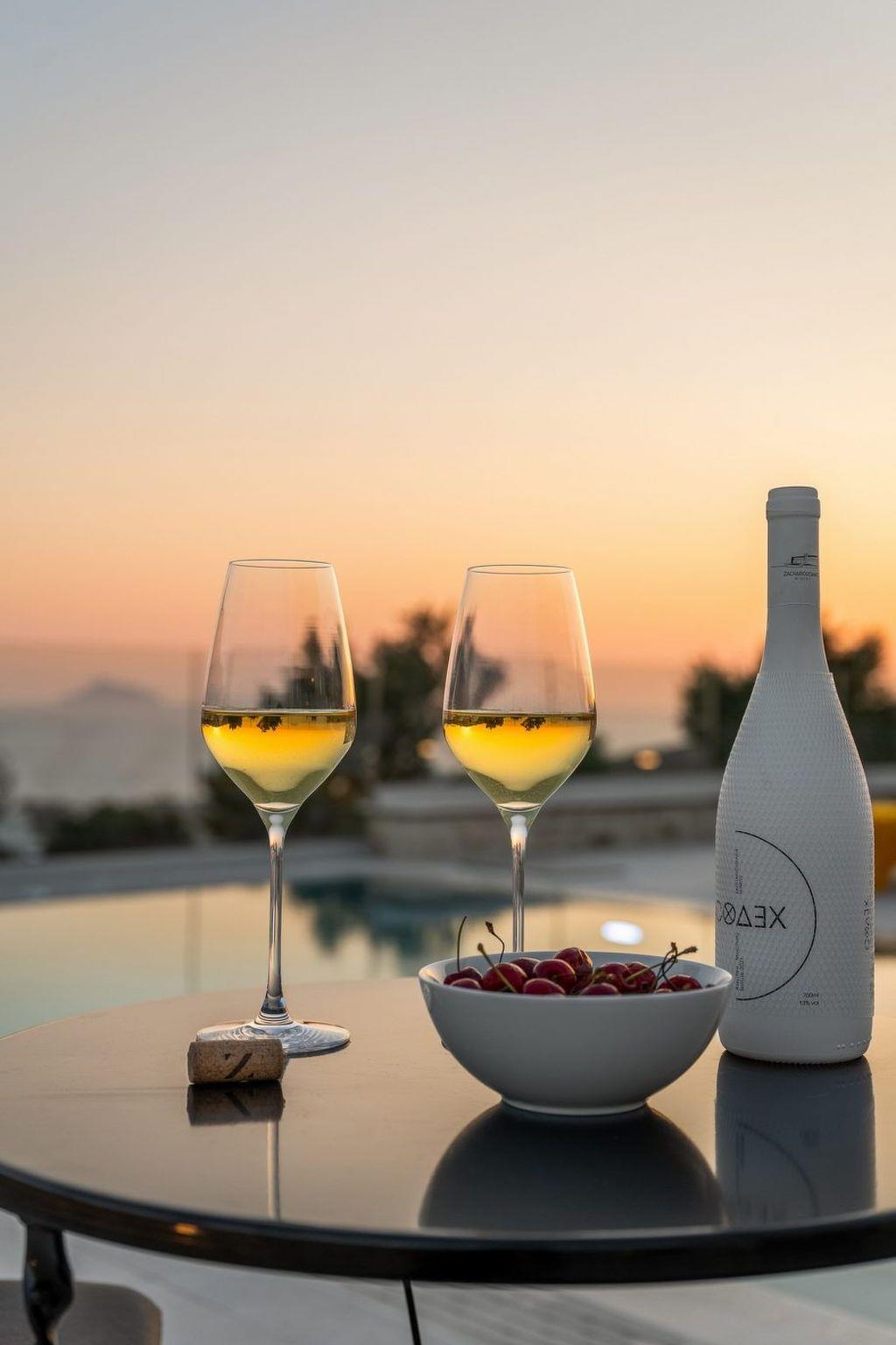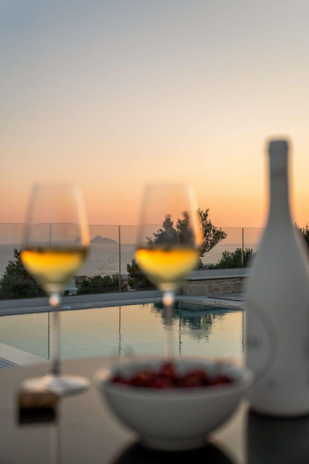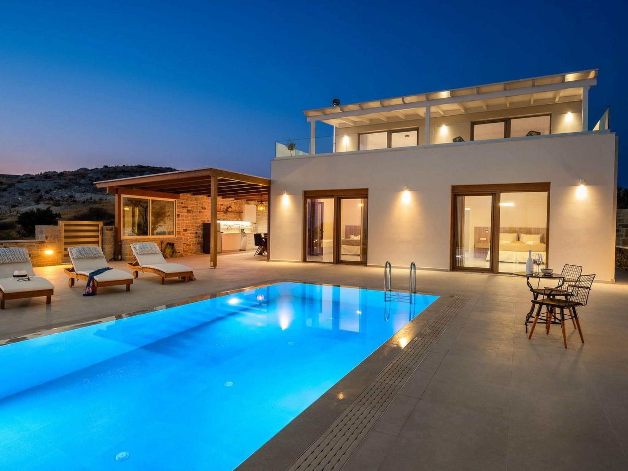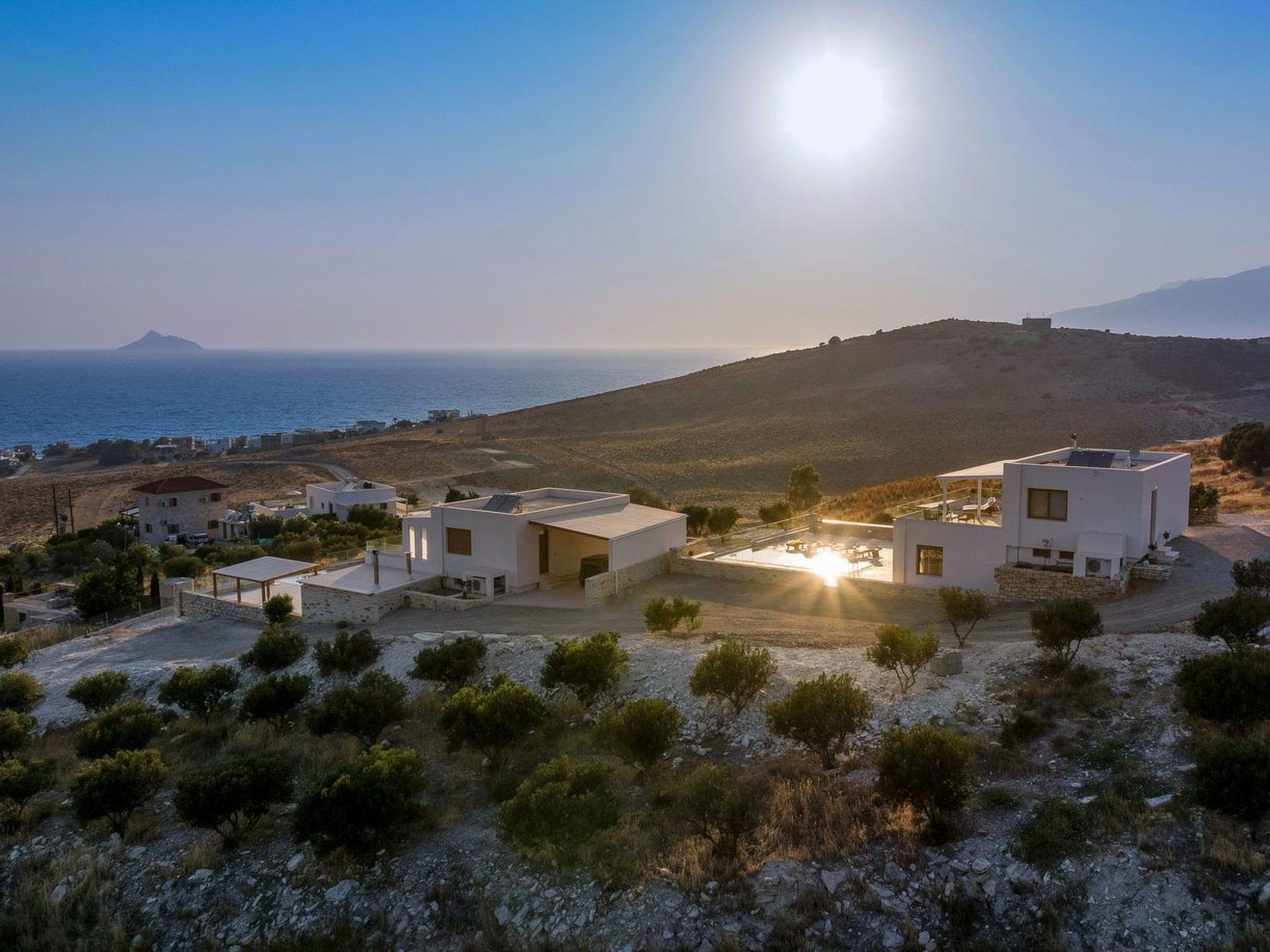 In the villa you will find a modern interior design on two levels with a total of 150m² of living space and a 50m² balcony, ideal for 4-6 people. The upper floor contains an inviting eat-in kitchen with smart home technology, sofa bed, high-quality kitchen equipment, dining table and panoramic windows that flood the room with light and bring the fascinating sea view directly into your living room. A staircase leads to the 3 spacious bedrooms on the lower floor, each equipped with king-size beds, Smart TV, fan coil air conditioning and an en-suite shower room, each with access to the pool and outdoor kitchen.