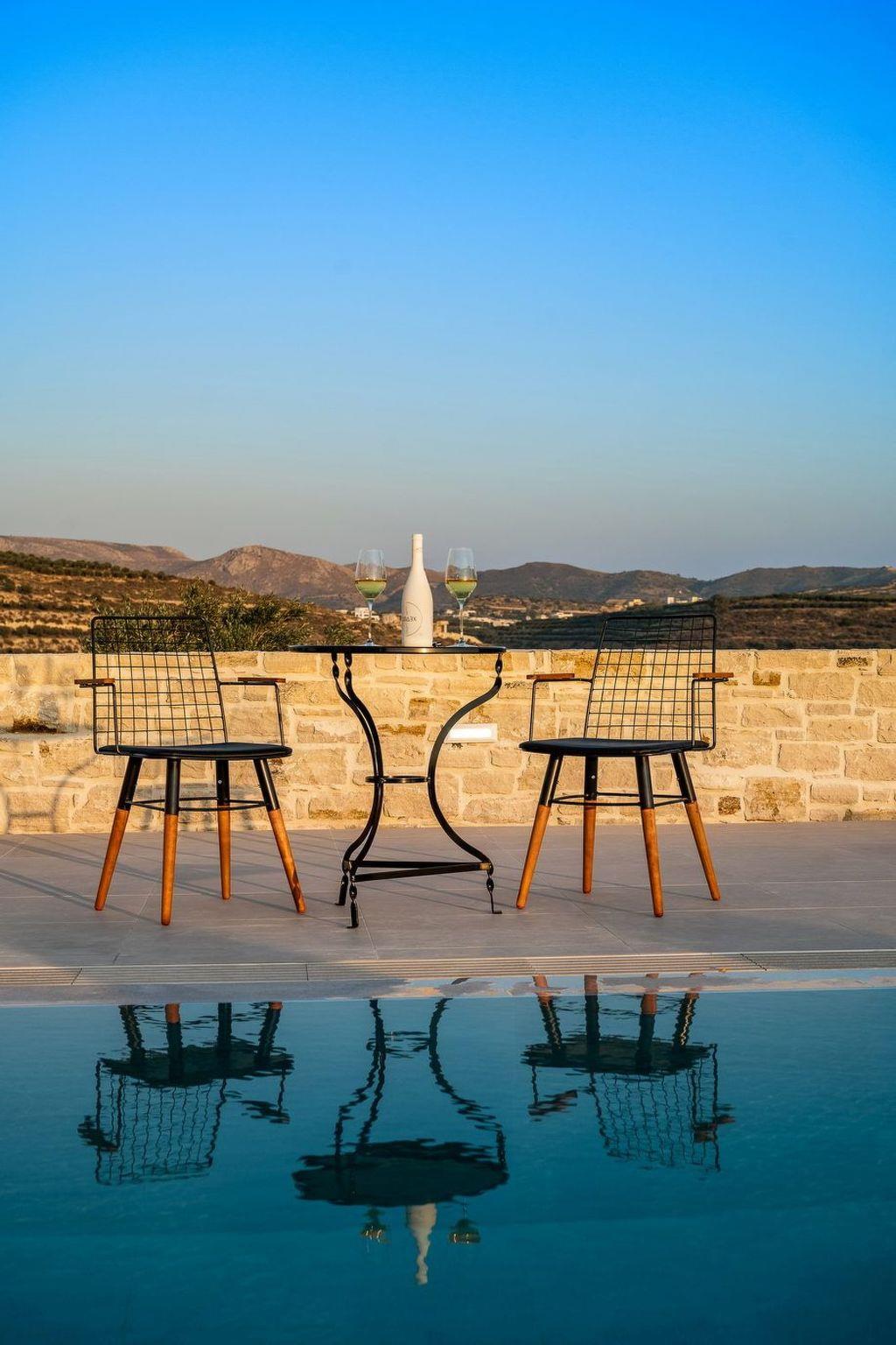 The outdoor area is a true oasis of relaxation and leaves nothing to be desired. On a 500m² terrace you can relax under the sun of the Libyan bay, while the fully equipped outdoor kitchen with gas barbecue ensures cosy evenings. The private pool invites you to take a refreshing dip and can be heated on request. A carport offers space for two hire cars, and the comfortable sun loungers invite you to linger and enjoy.