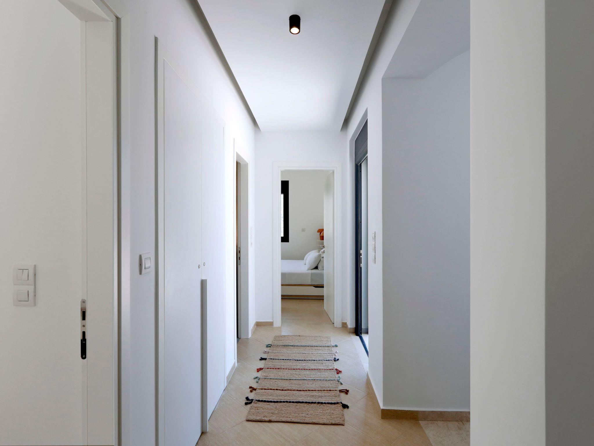 The architecture of the Villa is harmonically combined with that of the traditional village of Vrachasi, as stone is beautifully combined with modern touches. The exterior is well blended with the green olive groves that surround the estate and the absolute-blue color of the salt-water swimming pool offer an unparallel aesthesis of tranquility. The eco-friendly cleaning procedure of the pool safeguards a natural pool enjoyment every single day and the wooden deck, furnished with sunbeds and umbrellas will make your stay an absolute day and night pleasure.The luxurious, yet minimalistic interior, with spacious rooms and lounge areas, is decorated with stylish and design furniture and offer a like-home experience and coziness. The contemporary touches, with earthy colors and wooden surfaces, along with the state-of-the-art equipment and appliances provide a lovely feeling of contentment during your stay. Large windows allow abundance of natural light in the interior.