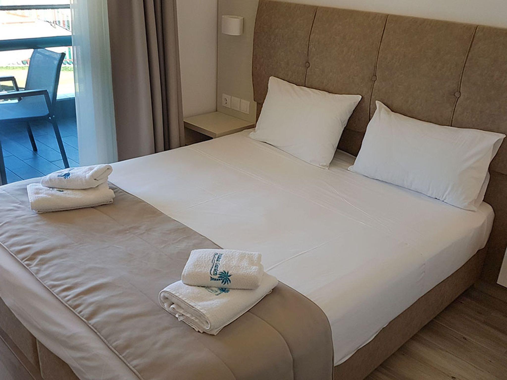 The Garden Beach Resort built in 2016 lies in a green oasis with olive trees and palm trees. The beach is only 150 metres away. Tavernas, cafeterias, shopping facilities are within walking distance. The yacht harbour and the centre of Nikiti Beach are 600 metres away. The big beach promenade at Nikiti invites you to go on long strolls in the evening. The resort is ideal for families with children, owing to its quiet location, the swimming pool with a kids’ area and the big children’s playground.