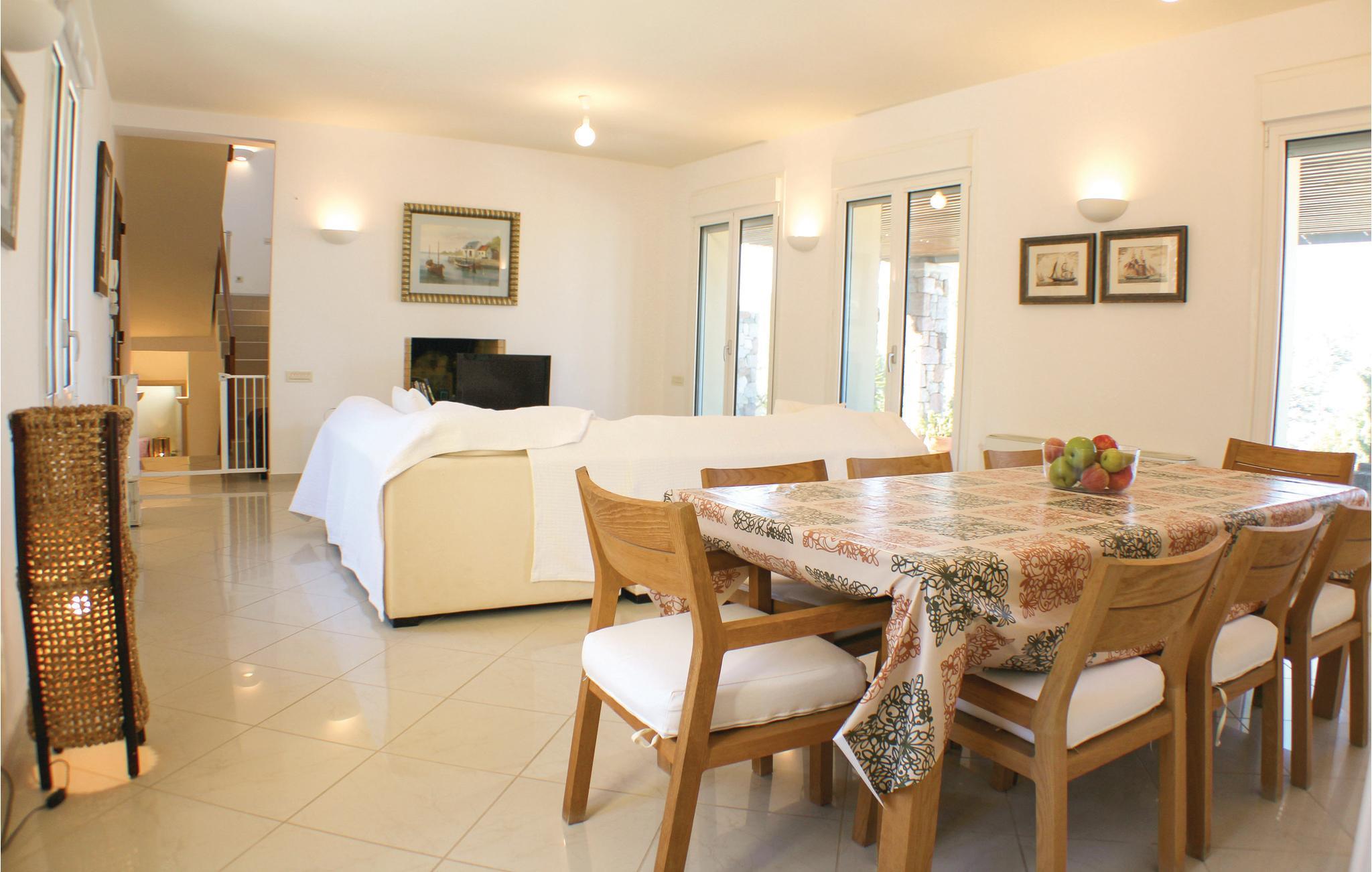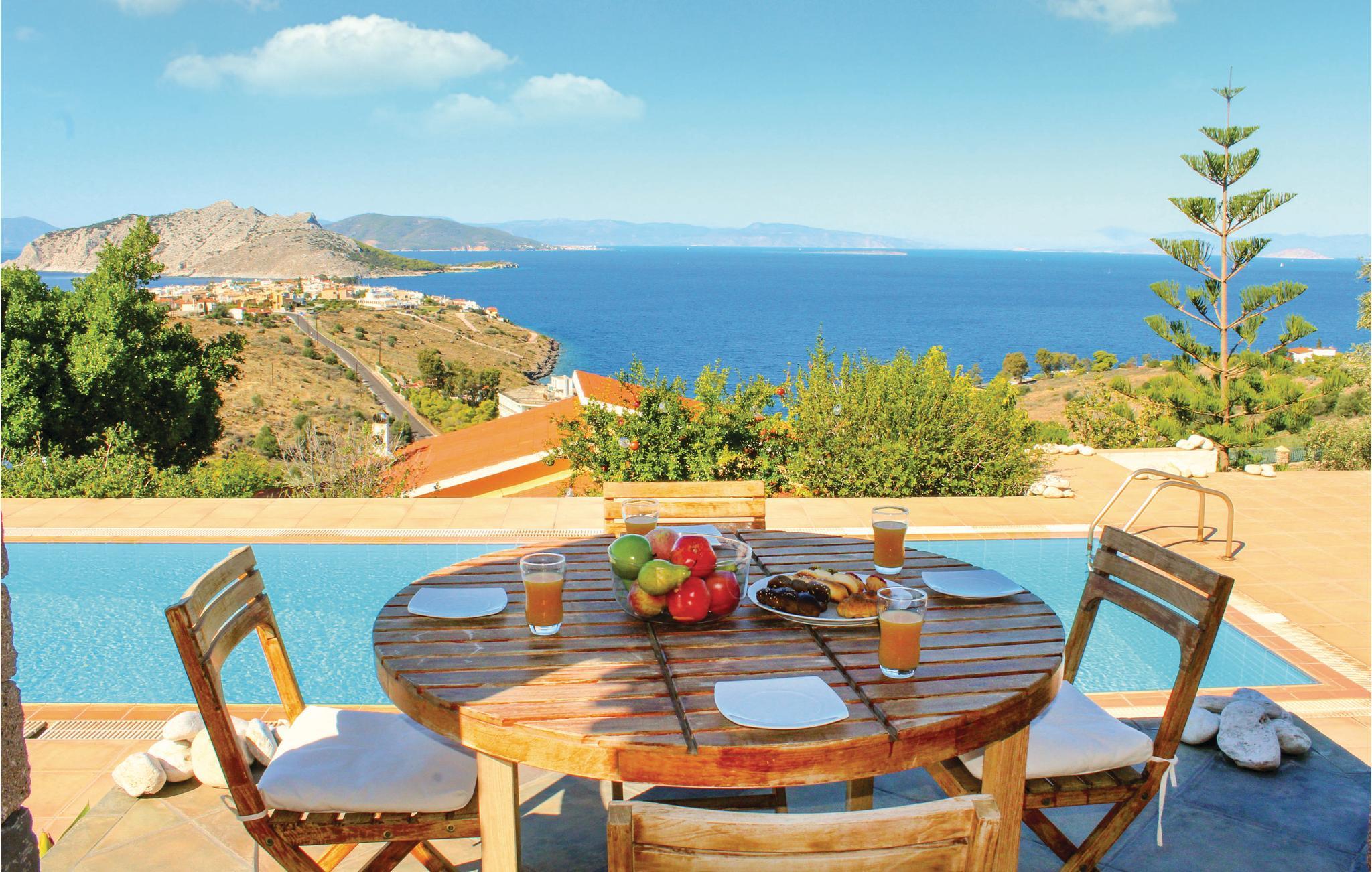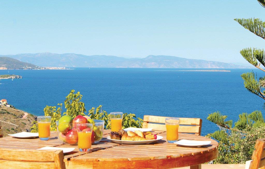 Dette moderne og stilfulde feriehus har en fremragende beliggenhed på den saroniske ø Égina, og er et perfekt valg til en herlig ferie i Grækenland. Til huset hører en privat swimmingpool, hvor I kan tage en forfriskende dukkert på varme sommerdage. I huset findes seks soveværelser, fem badeværelser, to køkkener og en rummelig stue-/spisestue. Til huset findes en dejlig, overdækket terrasse med spiseområde, hvor I kan sidde og slappe af, mens I nyder den storslåede udsigt over havet og fascineres af solnedgangen om aftenen. Der er kun 500 m til stranden fra huset.