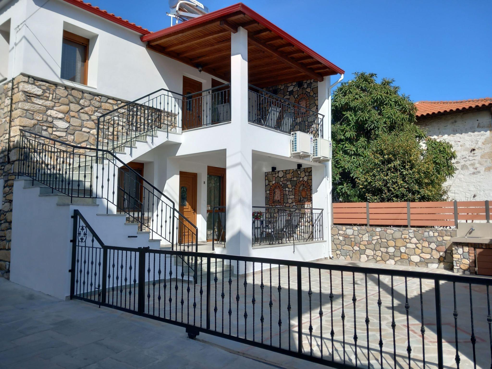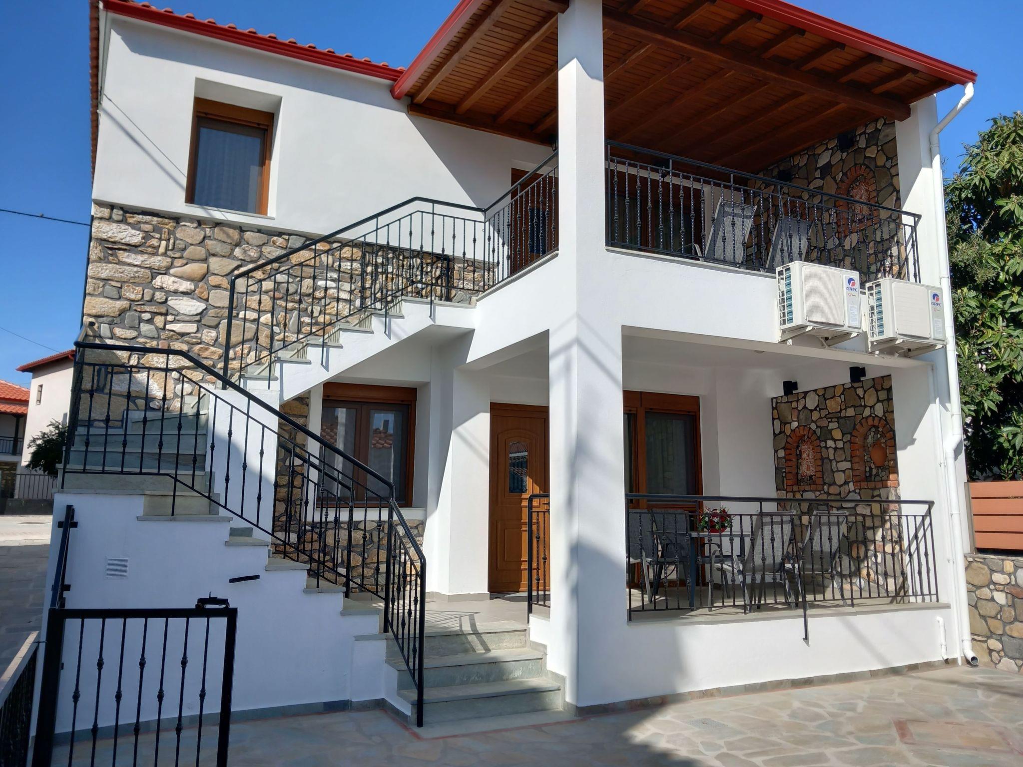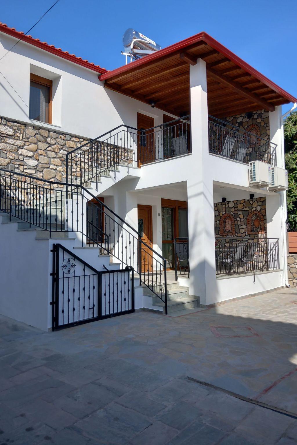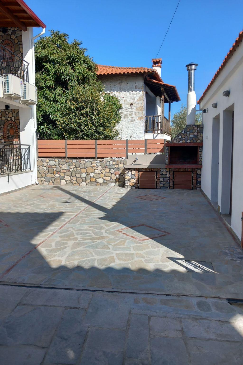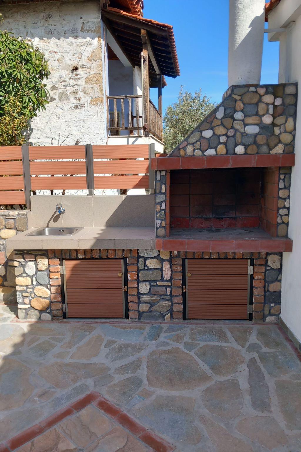 The nearest beach "Trani Ammouda" is only 10 minutes away by car. The bakery, supermarket, butcher's shop, greengrocer's shop and the square with cafés, pizzeria, bougatzerie and restaurants, ice cream parlours and snack bars are all within a 3 to 5 minute walk. Every Thursday there is a weekly market in the village of Agios Nikolaos with fresh fruit and vegetables, including live Greek music in the heart of the village on Wednesdays and Fridays. Agios Nikolaos is located on the Sithonia peninsula. The village is right next to the forest, where you can go hiking or mountain biking (early and late season). In sunny weather you can hire a boat and explore the island of Diaporos, opposite Vourvourou. There are marvellous sandy beaches with crystal clear blue water all over Sithonia.