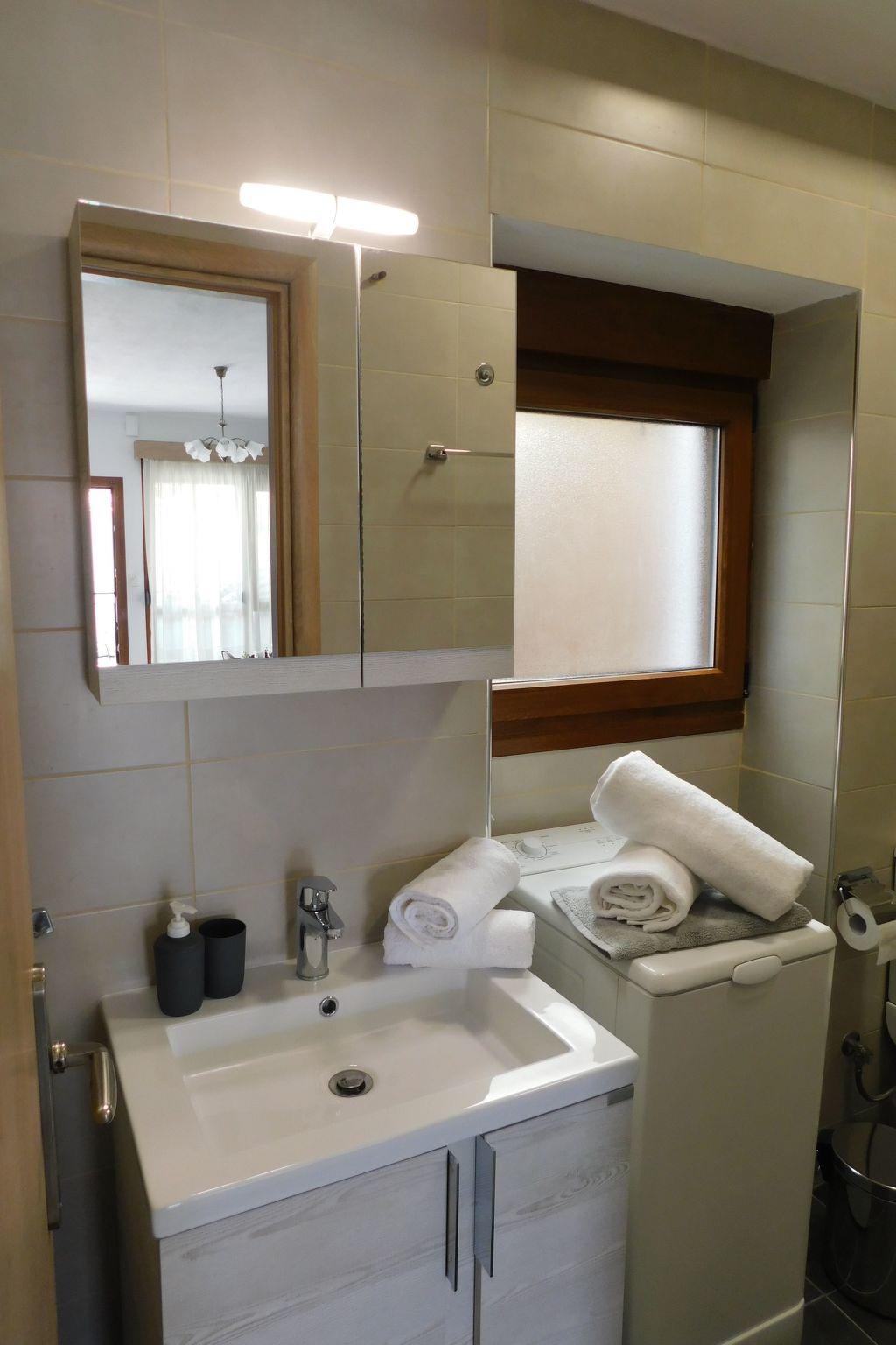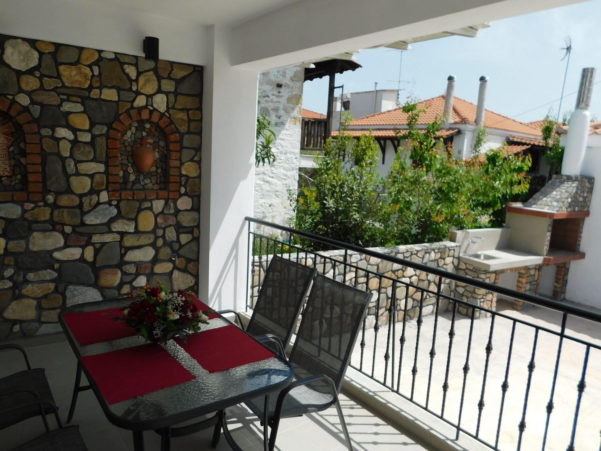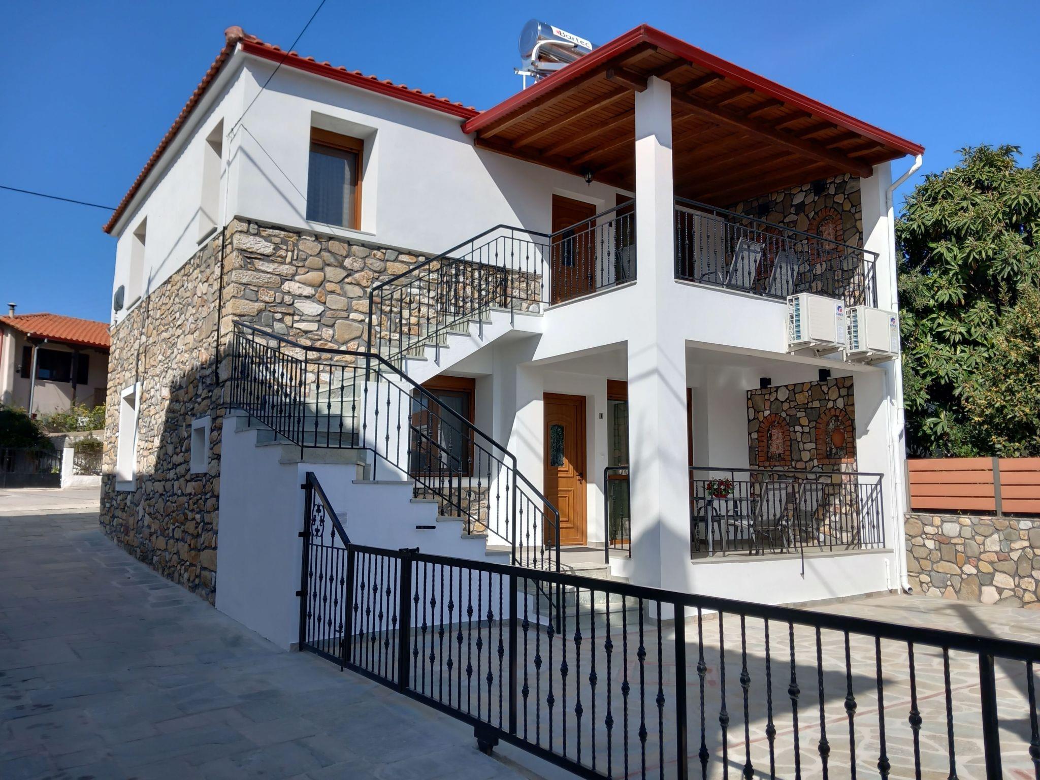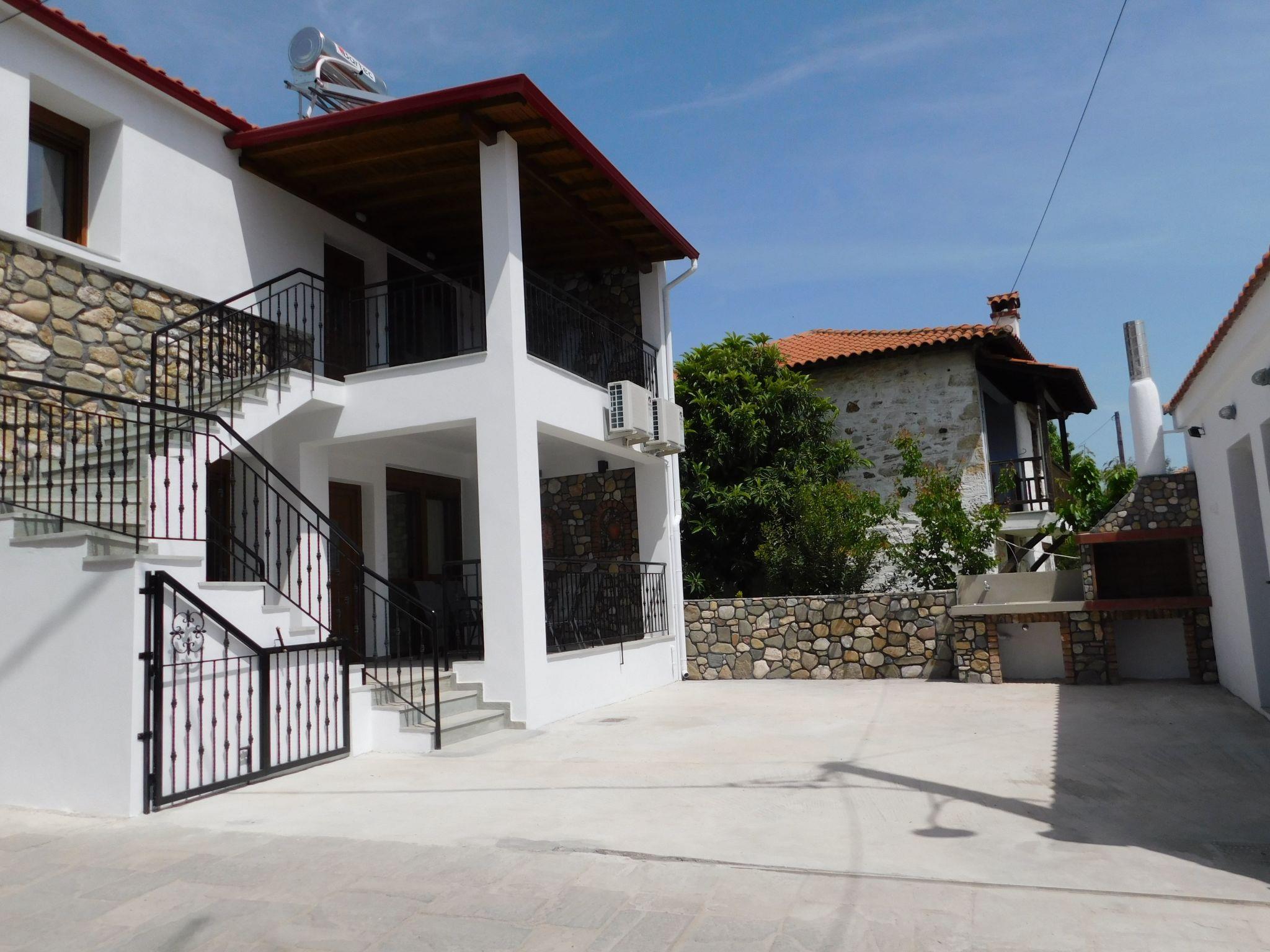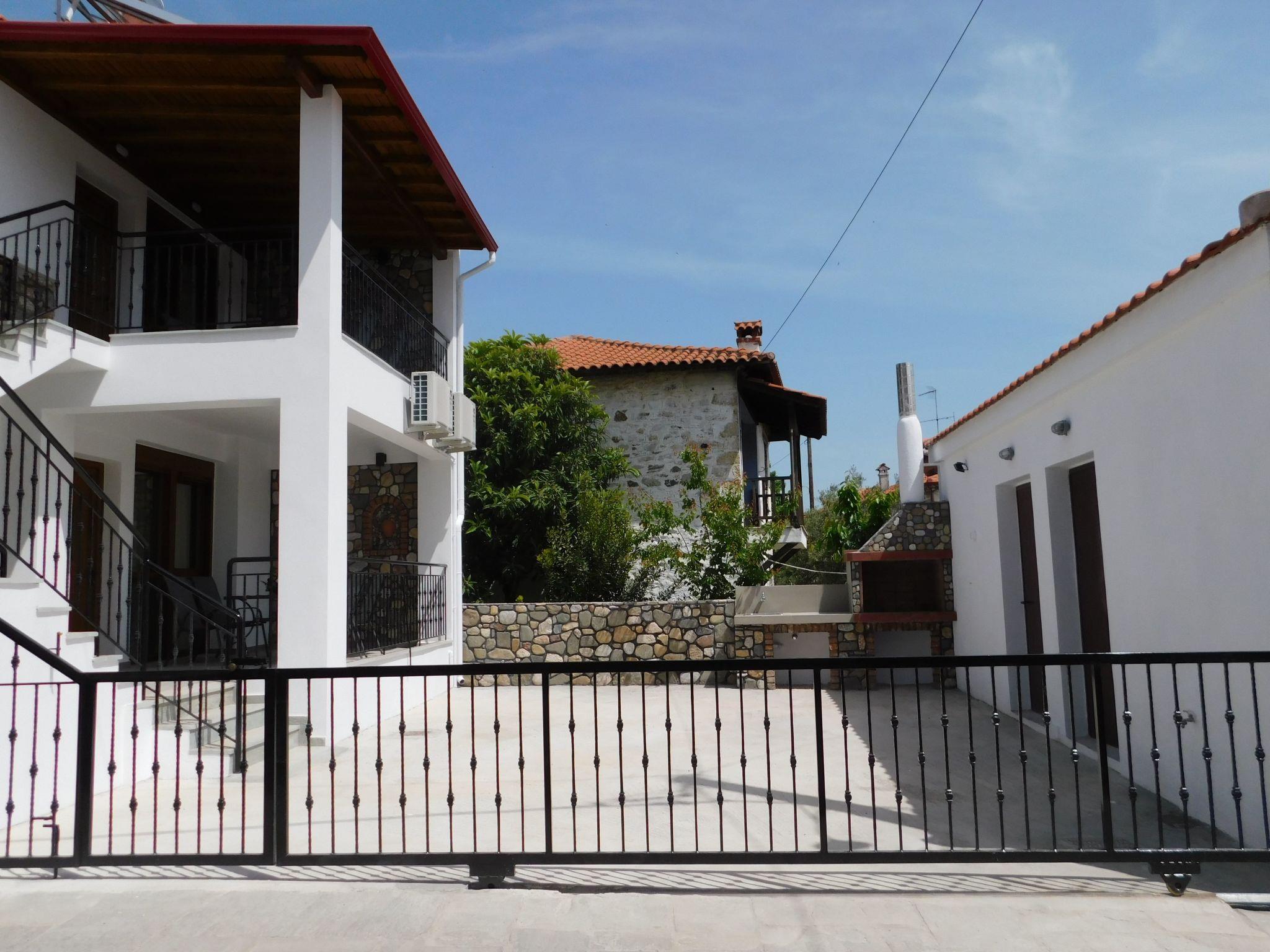 The nearest beach "Trani Ammouda" is only 10 minutes away by car. The bakery, supermarket, butcher's shop, greengrocer's shop and the square with cafés, pizzeria, bougatzerie and restaurants, ice cream parlours and snack bars are all within a 3 to 5 minute walk. Every Thursday there is a weekly market in the village of Agios Nikolaos with fresh fruit and vegetables, including live Greek music in the heart of the village on Wednesdays and Fridays. Agios Nikolaos is located on the Sithonia peninsula. The village is right next to the forest, where you can go hiking or mountain biking (early and late season). In sunny weather you can hire a boat and explore the island of Diaporos, opposite Vourvourou. There are marvellous sandy beaches with crystal clear blue water all over Sithonia.