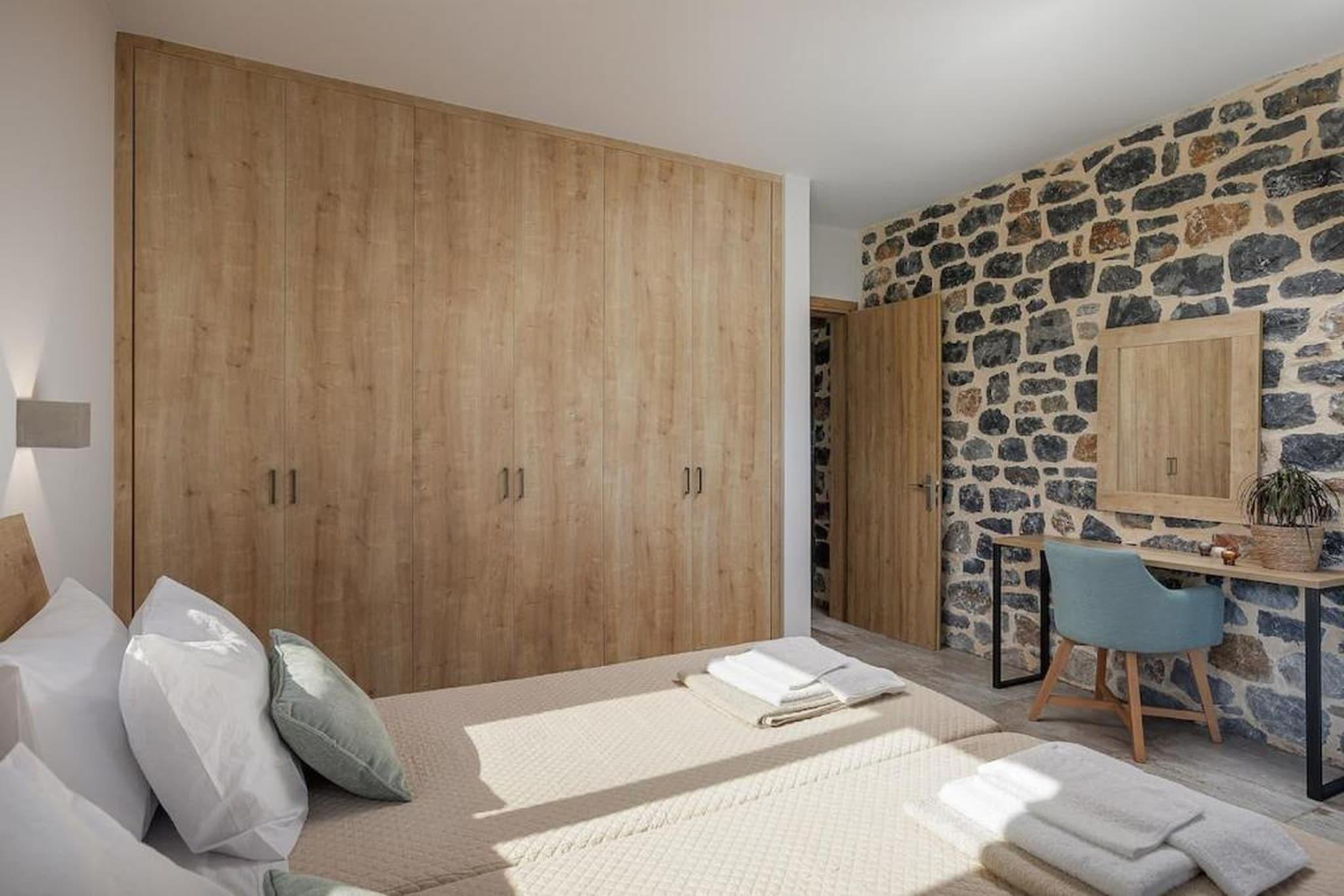 Disse villaer, der ligger på en fredelig ejendom nær Damnoni-stranden, tilbyder et fleksibelt ophold, hvor privatliv, åbent rum og naturlige omgivelser forenes. Ejendommen er omgivet af grønne områder med udsigt over bjergene og kystlinjen og er velegnet til familier eller grupper, der rejser sammen, og som ønsker både uafhængighed og fælles udendørsområder. Indenfor omfatter ejendommen flere villaer med varierende planløsninger; denne kan rumme op til 4 gæster - med et veldefineret opholdsområde med komfortable siddepladser, et tv og en spiseplads til fælles måltider. Det fuldt udstyret køkken inkluderer essentielle apparater, hvilket gør den daglige madlavning praktisk. To soveværelser er fordelt på tværs af villaen med en blanding af dobbelt- og enkeltsenge, der tilbyder fleksible sovepladser, med to badeværelser, der inkluderer moderne udstyr med bruseniche, mens faciliteter som WiFi, aircondition, vaskefaciliteter og privat parkering sikrer et behageligt og bekvemt ophold hele vejen igennem. Udenfor er ejendommen centreret omkring en swimmingpool med åben udsigt, omgivet af terrasser, haver og udendørs siddepladser. Grillfaciliteter og skyggefulde spisepladser skaber et afslappet miljø til måltider og sammenkomster, mens de anlagte omgivelser tilbyder plads til at slappe af hele dagen. Villaerne ligger i nærheden af Damnoni og Plakias, inden for rækkevidde af sandstrande, vandsportsaktiviteter og vandreruter langs kysten. I nærheden kan gæsterne udforske traditionelle landsbyer, besøge den venetianske by Rethymno eller tage dagsture til naturskønne steder såsom Frangokastello. Uanset om du slapper af på stedet eller udforsker regionen, tilbyder ejendommen en velafbalanceret base for at opleve det sydlige Kreta.