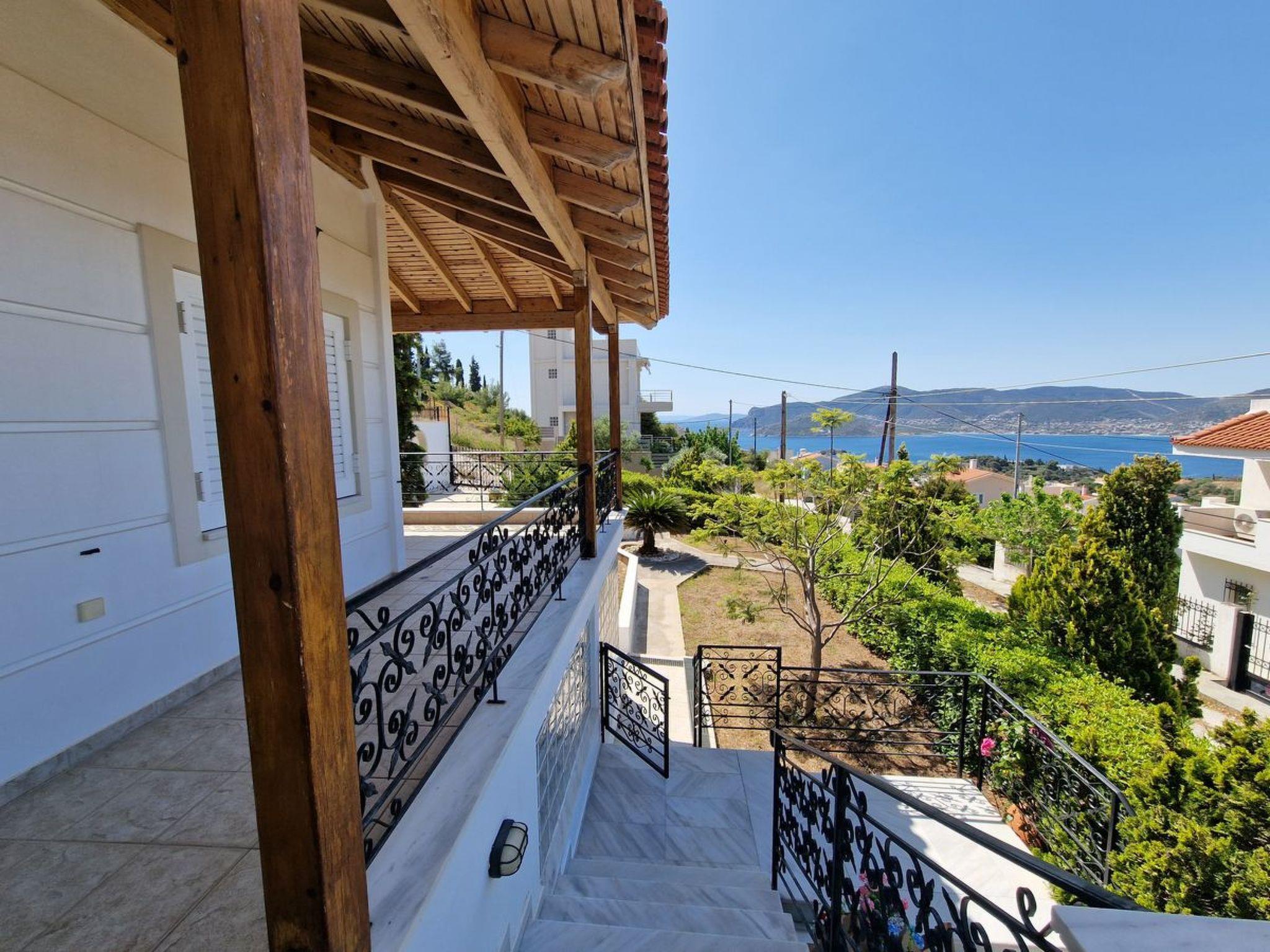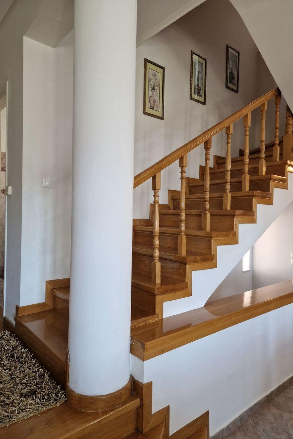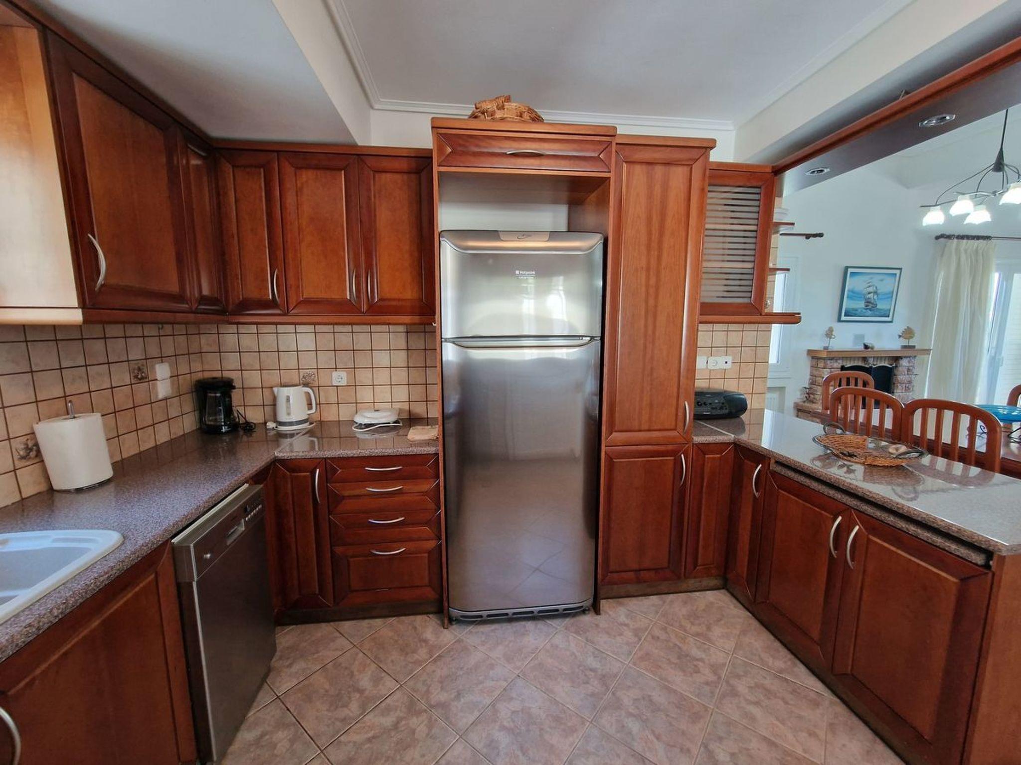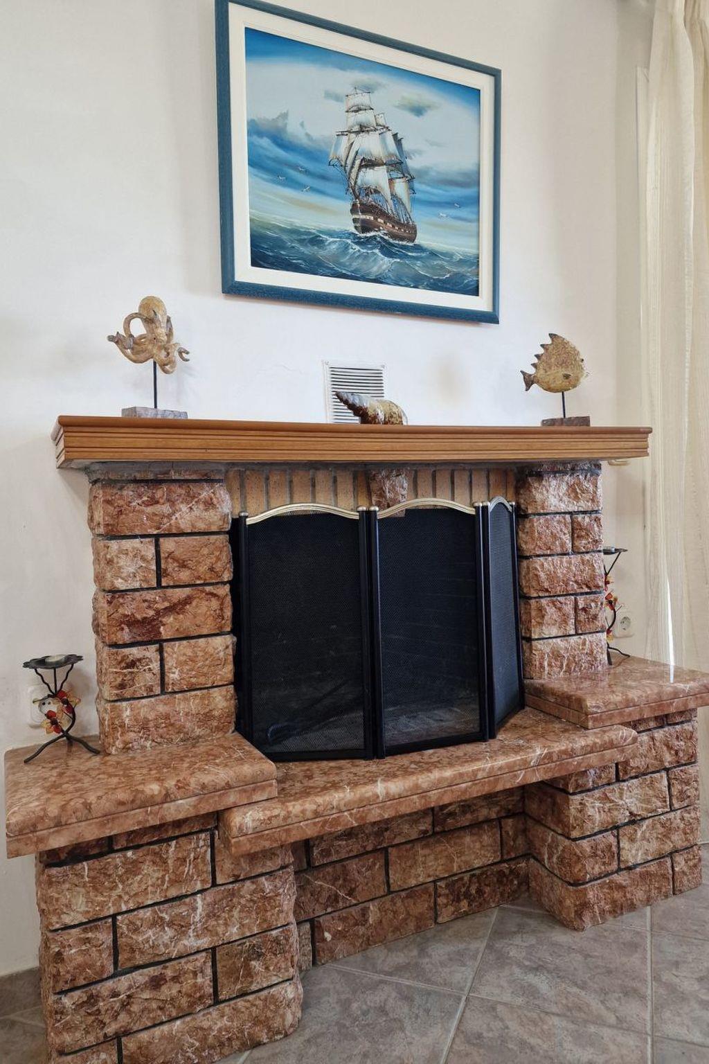 The luxurious villa offers four bedrooms and can accommodate up to eight guests. It has three levels and boasts a living space of 140 m². On the first floor, there is a large living room with a combined kitchen and a beautiful fireplace. The kitchen is fully equipped with electrical appliances while a large dining room is hosted in the same room. Guests can dine at the table on the balcony on this floor where the view is stunning. There is also a bedroom with a small bathroom. Between the first and the second floor there is a large bathroom with a bathtub. On the second floor there are two bedrooms, one with a double bed, a large bathroom and a veranda with fantastic sea views, and the second one with two single beds. A small living room is also housed in the large bedroom. Above the second floor, there is a large loft with a bedroom and a living room in the same room. A small bathroom is also available. All floors are connected with wooden staircases. The villa features heating and air conditioning, as well as 24-hour hot water. It also has three TVs, Wi-Fi internet, CD, radio etc.