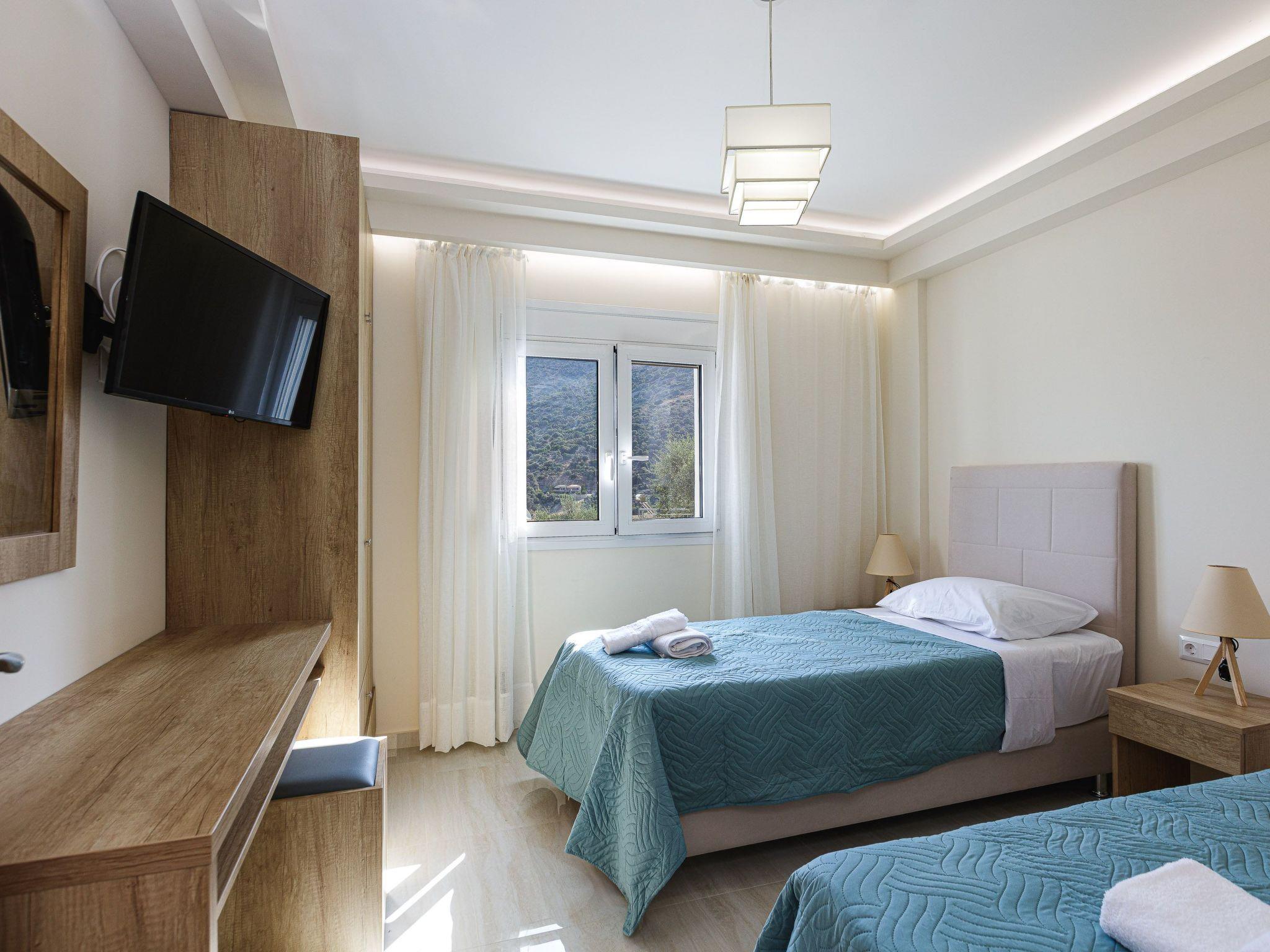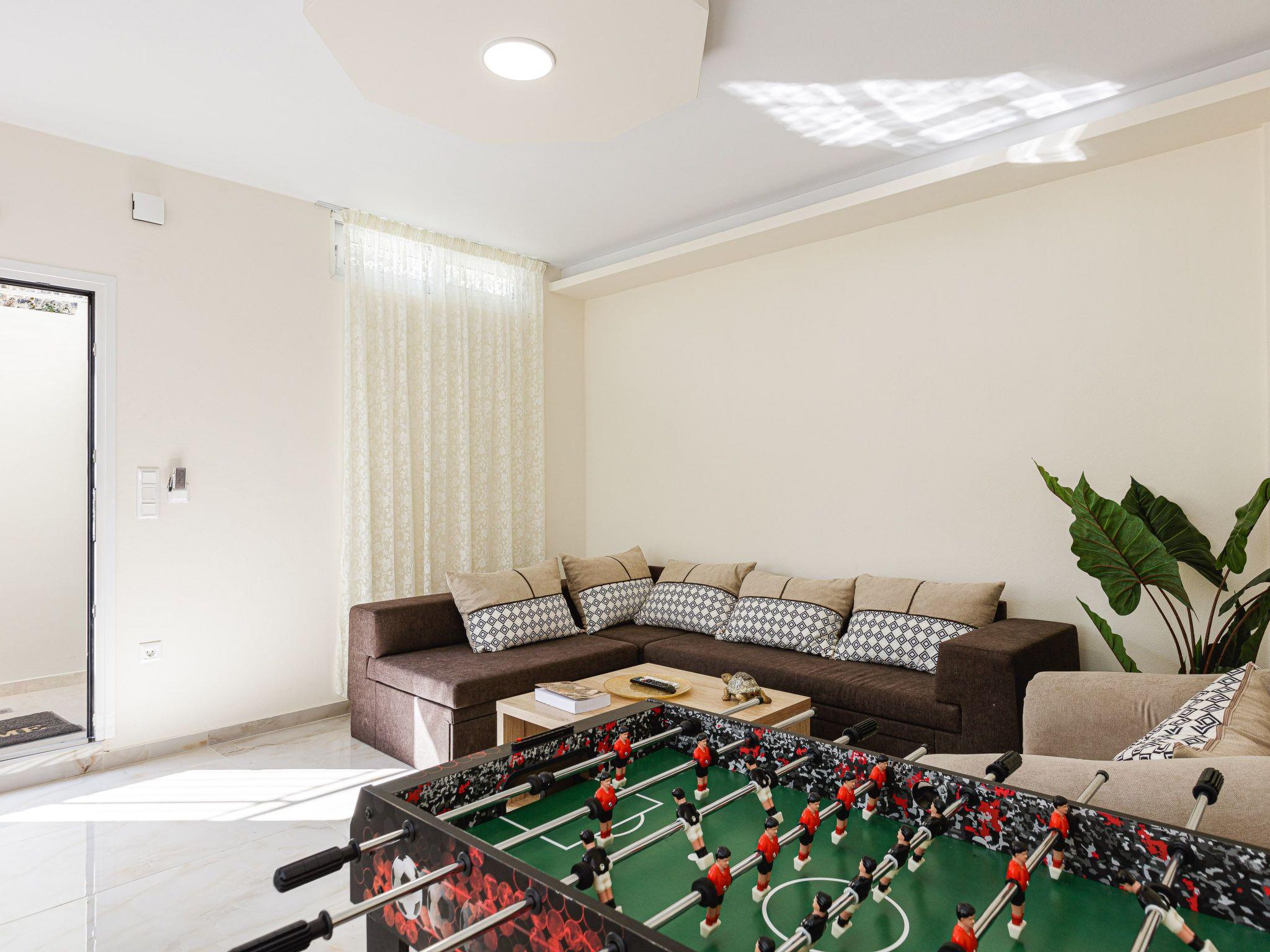 Villa Gloria is an exquisite family vacation rental situated in the Bali vicinity of Crete, a fashionable resort island in Greece. While this attractive villa is close to various magnificent beaches, restaurants, and local amenities, the delightful Villa Gloria is also the perfect getaway for a secluded, private family holiday. The beautiful Villa Gloria in Bali, Rethymno, is the ideal destination for a peaceful, relaxed, and enthralling family vacation in Greece. The tranquil location of the holiday villa ensures privacy, yet there are ample holiday attractions within easy reach of the holiday rental property. The private family villa boasts a stylish living area, tastefully furnished with ample seating for family and friends, a 53-inch smart TV, and a sound system with Bluetooth speakers. In the property the internet speed is 50mbb. Furthermore, there is air conditioning available to keep guests comfortable during their stay. Villa Gloria is fitted out with a sophisticated, modern kitchen with an oven, microwave, dishwasher, refrigerator, and freezer, as well as a coffee machine, toaster, and kettle. In addition, there is a mixer, blender, water filter, juicer, and egg machine offered for visitors’ convenience. There is also a cozy dining area with ample seating. The family holiday villa has 2 double bedrooms and 1 twin bedroom, with additional bedding to sleep up to 7 guests if required. The bedrooms have private balconies, air conditioning, and a safe for guests to enjoy. There are 2 full bathrooms of which one is ensuite, with 2 towels per guest and a hairdryer. Cleaning service is available once a week and amenities for guests include a washing machine, iron, and ironing board. The inviting outdoor area is host to a heated swimming pool in a peaceful garden setting, perfect for spending long summer days relaxing with the family. This Crete holiday villa has an extensive outdoor entertainment area, shielded by a large pergola. It contains a gas grill BBQ and a dining area, as well as informal seating and a children’s play area. Additionally, there is a football table for guests’ enjoyment. The Gloria family holiday villa also includes parking space for 2 cars.