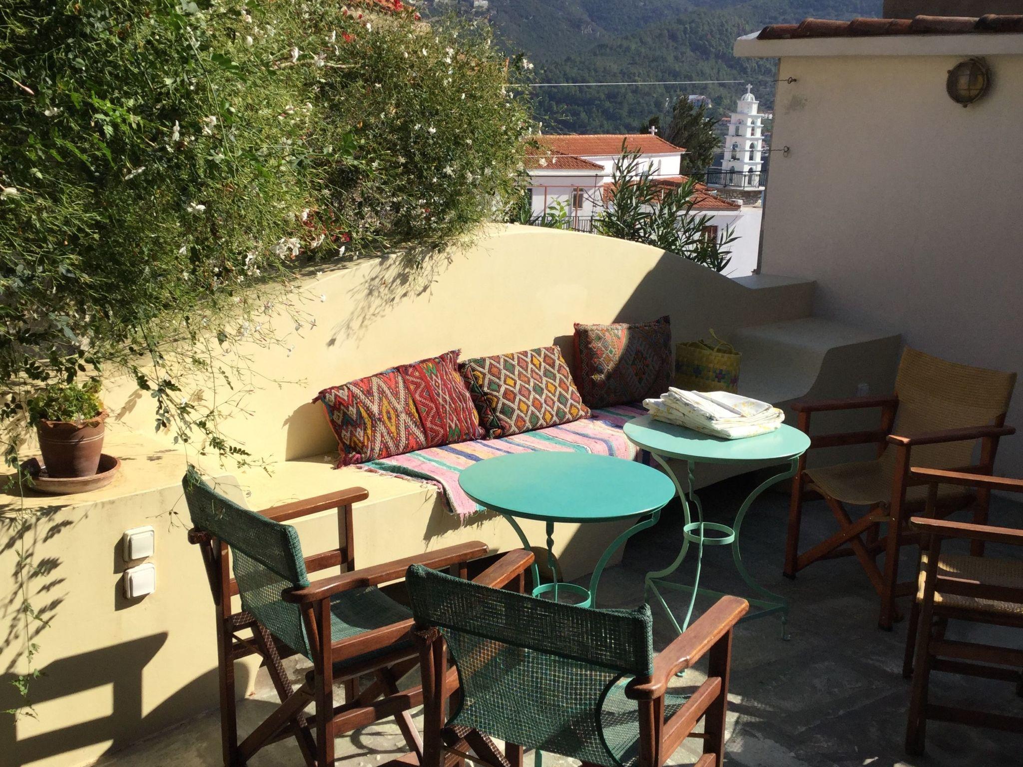 It is a ten-minute walk to the harbour, taverns and shops. The return trip takes fifteen minutes. Via Kastro, you can walk to Glifoneri beach in ten minutes. There is also a laundrette near the house. By the way, did you know that Skopelos was used as a filming location for the movie "Mamma Mia"?