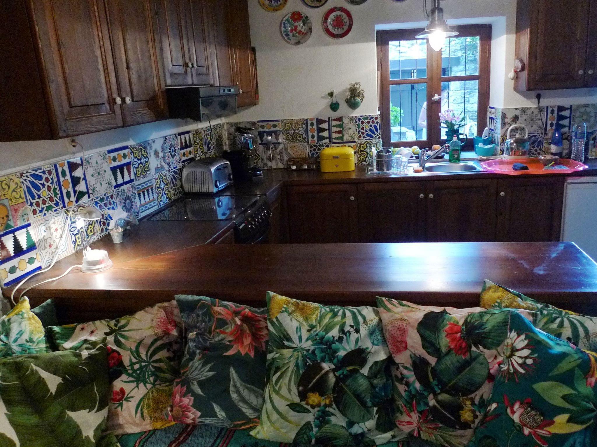 Two French doors from the bedroom lead to the traditional wooden balcony, from where there are stunning views over the sea, the rooftops and the harbour. In the courtyard is a large terrace with barbecue, where you can enjoy outdoor dining and relaxing in the sun. But there is also a shady spot. There is a lemon tree in front of the house and the scent of jasmine. You can park in the public, free car park above the house and the access road.