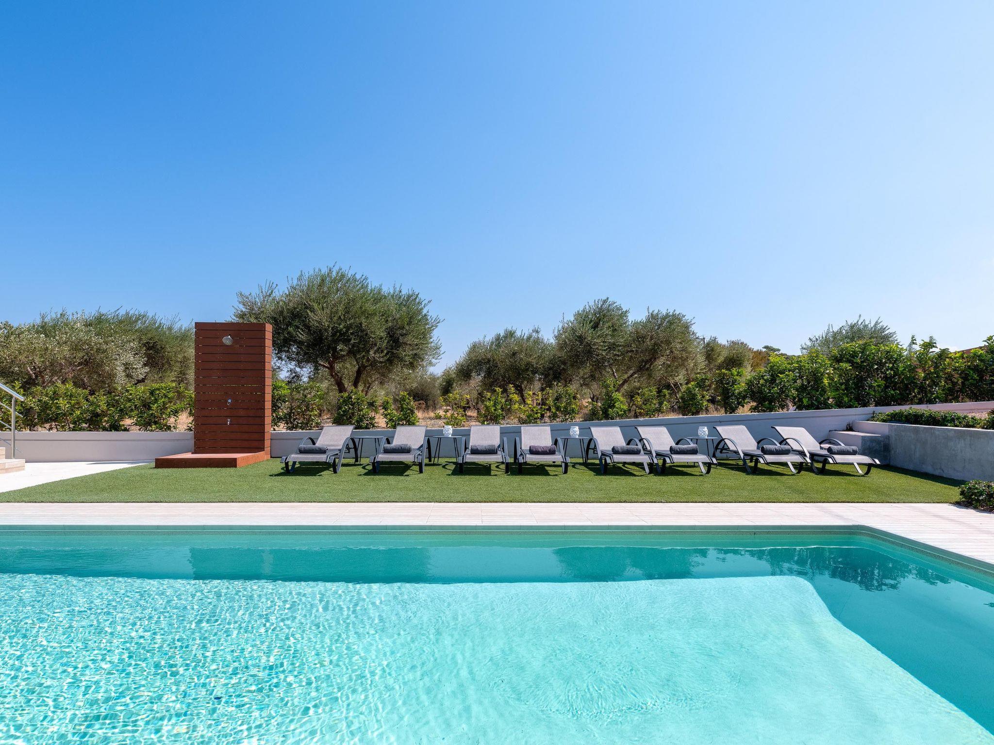 It consists of 4 bedrooms which accommodate up to 8 people, a spacious fully equipped kitchen ,a dining area and a comfortable living room. Every rooms has a panoramic and uninterrupted view to the garden or Aegean Sea. The exterior of the villa is definitely something that guests will enjoy as it features a private pool with sunbeds ,hammoch, outdoor lounge, and BBQ facilities.