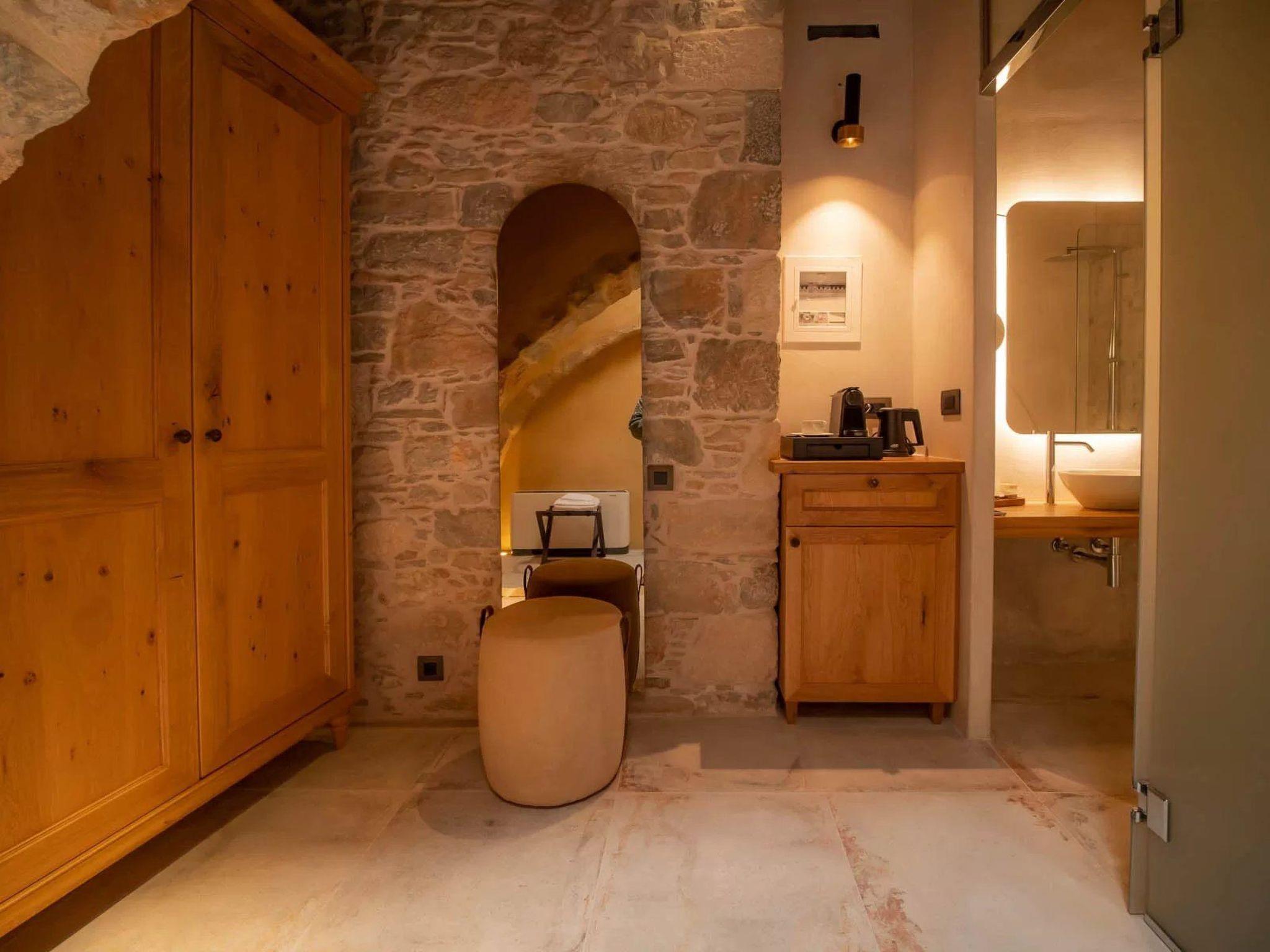 Outside, the apartment boasts access to a lovely terrace, providing a tranquil spot for morning coffees or evening relaxation. Not to be missed is the roof terrace, designed for communal use, where guests can connect and share their experiences under the warm Cretan sky. These outdoor spaces are ideal for soaking in the calm vibes of Agia Paraskevi, providing a perfect blend of privacy and community.