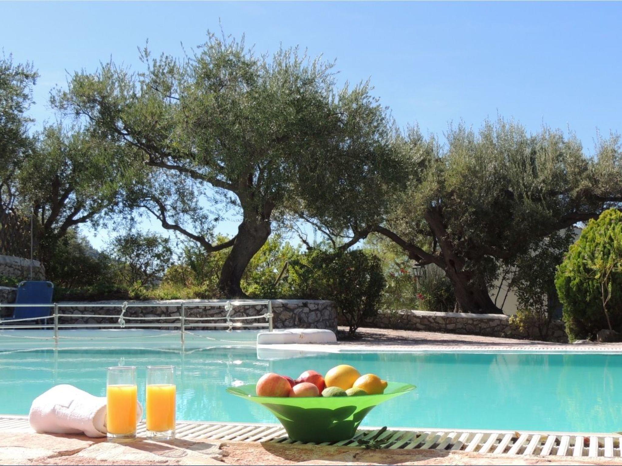 Outside: Villa has a private patio with furniture, cloam oven and BBQ. The villa shares a large swimming pool (12m x 6m, 0,8 -2,00 depth) with its jacuzzi and children's pool, available to all guests with ample space for sunbathing. A natural stone paved terrace and patio has subeds for the guests to use. Landscaped gardens surround the properties and at night, the pathways and pool are lit. Also you can enjoy from villa sea and hill views.