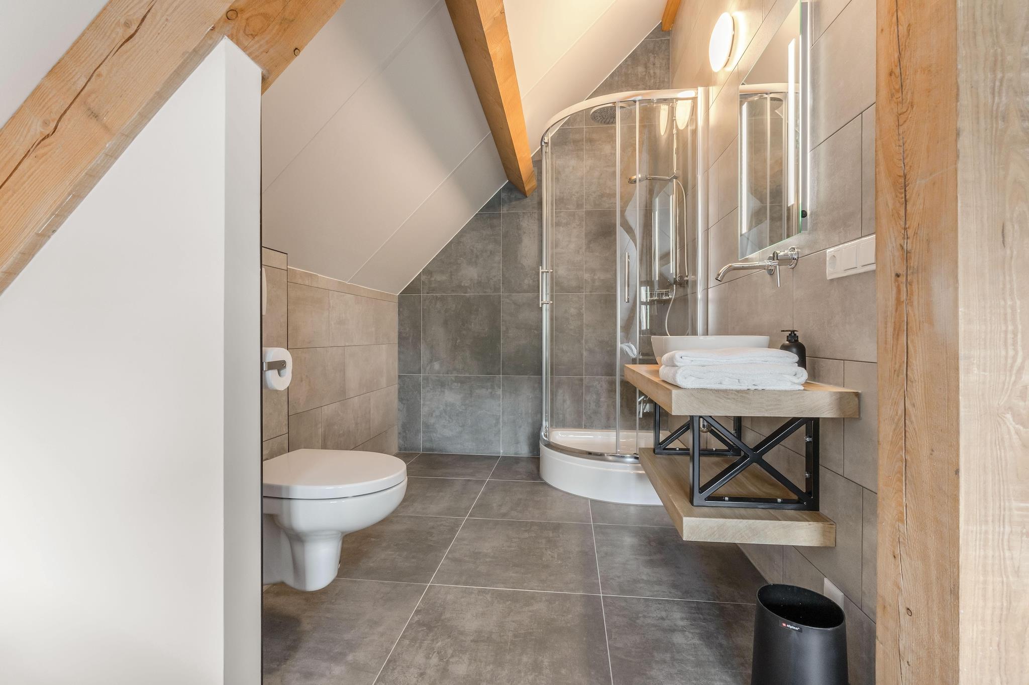 Dette smukke feriehus har sin charmerende fremtoning takket være kombinationen af udsøgte materialer som træ, sten, glas og stråtag. Husets praktiske indretning har gjort det muligt at bevare højden i stuen. Dette fremhæves yderligere af den næsten udelukkende glasfacade. Naturligvis er der taget højde for moderne standarder i designet af denne bolig. Det betyder, at du har et tv, gratis Wi-Fi og et fuldt udstyret køkken med en Nespresso-kaffemaskine. Du vil nyde ekstra komfort i soveværelset på første sal, komplet med eget badeværelse. Den pænt anlagte have har komfortable havemøbler med en smuk udsigt over den charmerende dam. Du finder alt, hvad du behøver for at føle dig hjemme. Åben mandag til fredag fra kl. 9 til 15. Lørdage og søndage er receptionen åben fra kl. 10 til 14. Virksomheder, der ønsker at komme ind i parken før og/eller efter receptionens åbningstider, skal kontakte beboeren direkte. Bemærk: Der er igen stor tørke, hvilket gør risikoen for skovbrande meget høj. Derfor er grillning på åbne kul/briketter, bålkurve osv. forbudt.