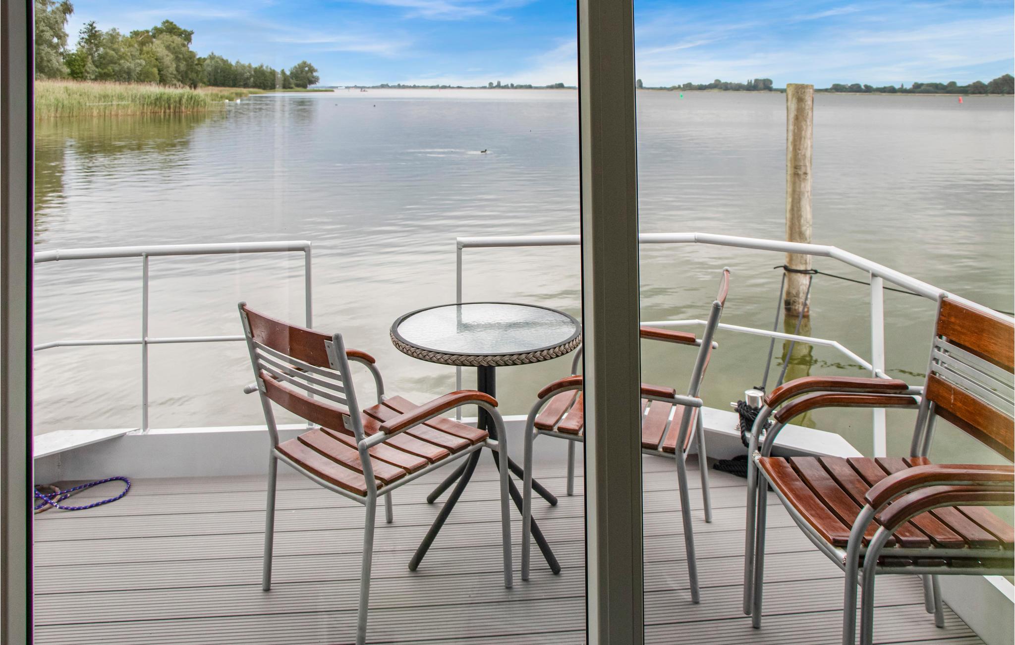 Nyd en fantastisk udsigt over søen fra denne husbåd.