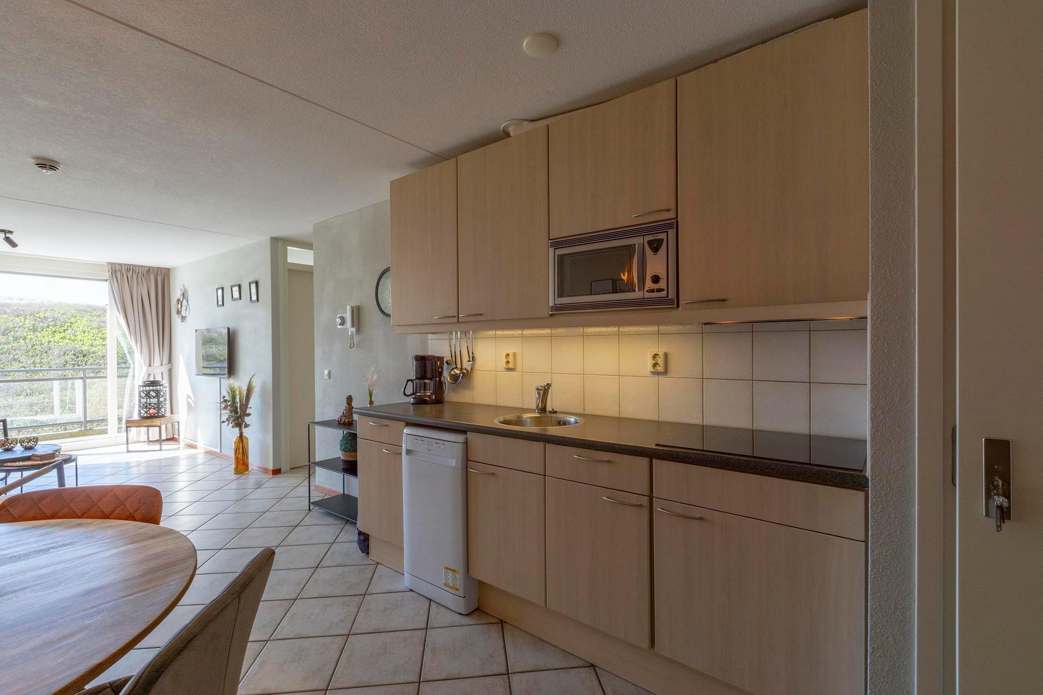 Moderne kystkomfort Træd ind i denne lyse og rummelige lejlighed beliggende kun få skridt fra stranden og det charmerende centrum af Callantsoog. Med stilfulde møbler, gulvvarme og et hyggeligt opholdsområde er det det perfekte sted at slappe af efter en dag udendørs. Det åbne køkken er fuldt udstyret, ideelt til at tilberede måltider til at nyde omkring det solrige spisebord. En privat balkon tilbyder panoramaudsigt - perfekt til kaffe ved solopgang eller et glas vin ved solnedgang. Familier er velkomne, og lejligheden er udstyret med en høj stol og barneseng til de mindste. Udforsk naturen og havets charme Dette hjem er ideelt placeret for dem, der ønsker at opleve det bedste af Callantsoog. Gå eller cykl til de brede sandstrande, udforsk det nærliggende Zwanenwater naturreservat, eller slentre gennem de berømte tulipanmarker om foråret. Området er kæledyrsvenligt med masser af naturskønne vandreruter, som dine hunde kan nyde ved din side. En kort gåtur fører dig ind i hjertet af byen, hvor lokale markeder og butikker inviterer til udforskning året rundt. Nyd lokale lækkerier At spise ude er en fornøjelse her, med en række restauranter i nærheden. Prøv Woest til middag ved stranden med udsigt over solnedgangen, eller nyd lokale retter på Amore Mio eller De Tav. Fra afslappede caféer til raffinerede bistroer, området henvender sig til enhver smag. Uanset om du laver mad eller spiser ude, placerer dette kysttilflugtssted dig i hjertet af Nordhollands kulinariske og naturlige skatte.