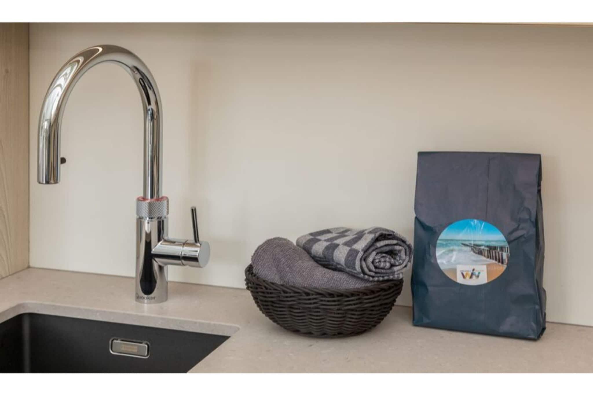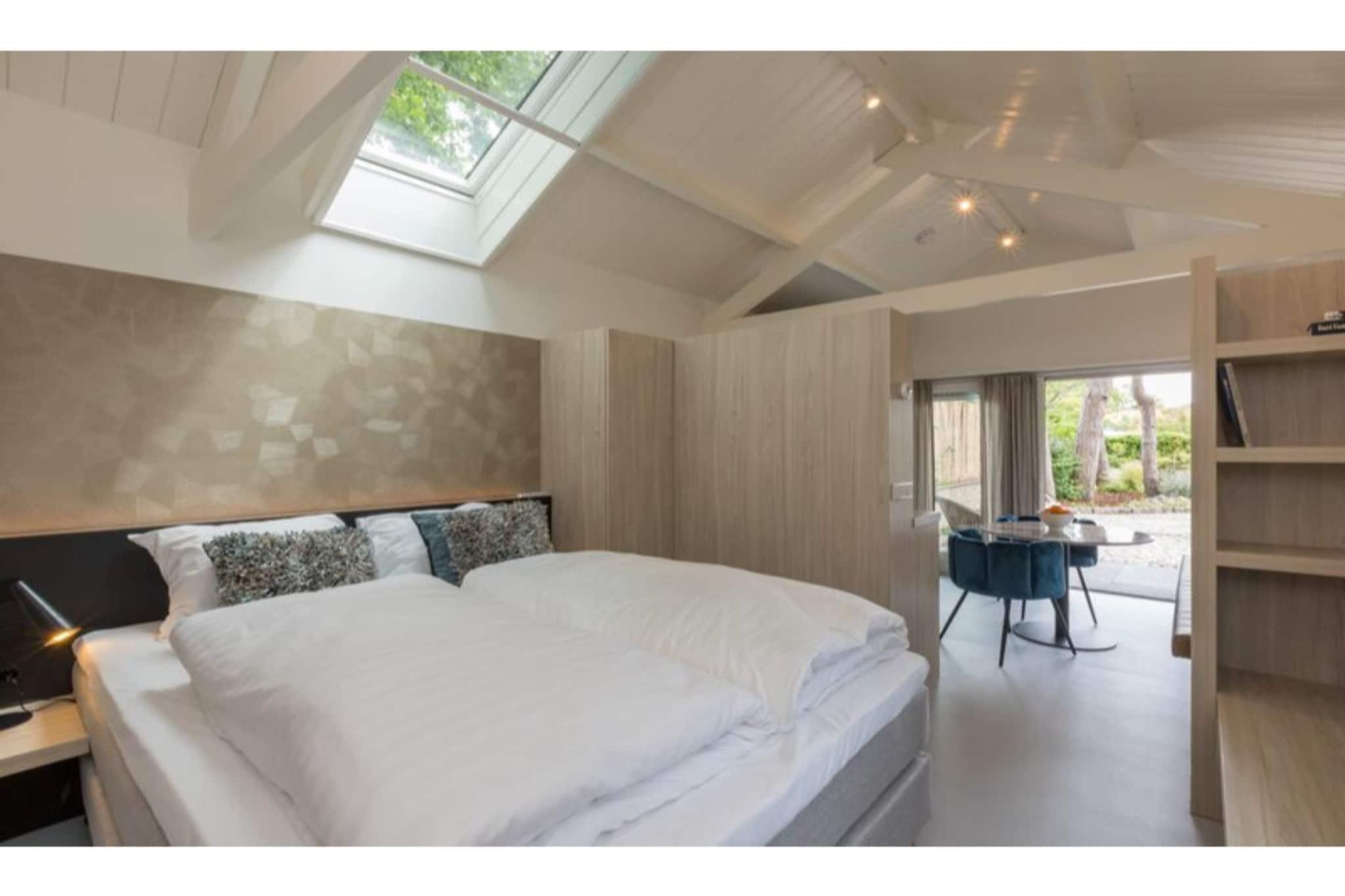 Moderne komfort i fredelige omgivelser Tag på ferie i dette smukt designede feriehus i hjertet af Domburgs frodige, grønne omgivelser. Dette hyggelige fristed ligger i et roligt boligområde og tilbyder alle de bekvemmeligheder, du har brug for til at slappe af – kun 3 minutters gang fra det livlige centrum og stranden. Den indbydende stue har et afslappende opholdsområde, en spiseplads og et fuldt udstyret køkken med ovn, mikroovn, opvaskemaskine og køleskab med fryser – perfekt til at tilberede en lækker måltid efter en dag i solen. Det åbne soveværelse har en luksuriøs boxmadras, mens det stilfulde badeværelse har en rummelig brusekabine, håndvask og toilet. Fremragende beliggenhed ved havet og naturen Selvom stedet ligger gemt væk i en rolig del af Domburg, er du aldrig langt fra alt det, der sker. Nyd morgenture i den nærliggende naturpark De Mantelinge, eller nå den brede sandstrand på få minutter for en dag med solbadning eller kitesurfing. Området er ideelt for naturelskere, par eller solo-rejsende, der søger fred og privatliv uden at være isoleret. En privat solrig terrasse giver dig mulighed for at nyde din kaffe eller et glas vin i den friske kystluft – perfekt til at genoplade batterierne i alle årstider.
