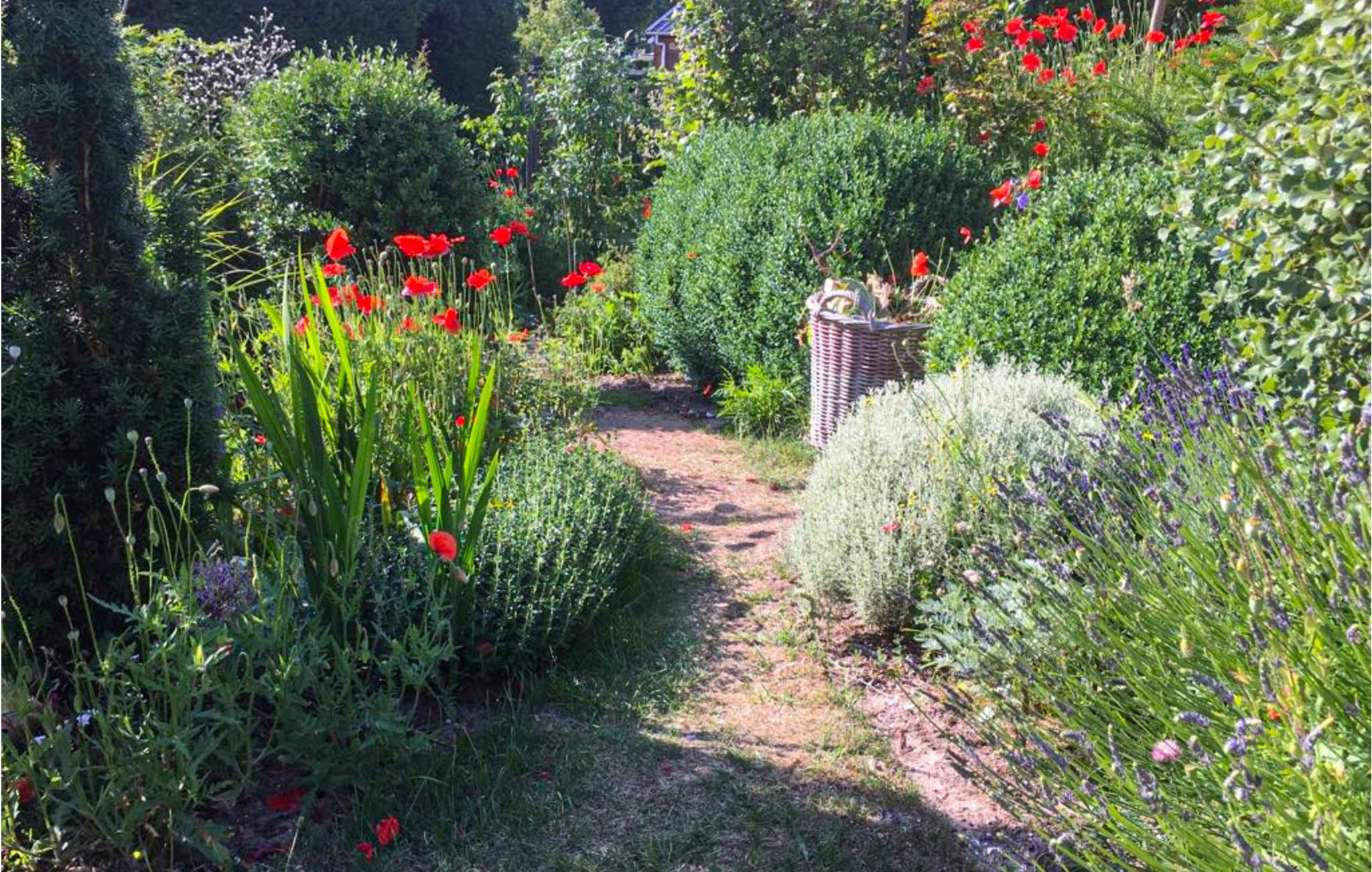 Rundt om huset er der terrasser med havemøbler, og I kan altid finde et sted i solen eller skyggen. Haven er flot anlagt og fuld af blomster og kunstværker. Der er et bouleområde, hvor I kan tage en lille dyst om aftenen.