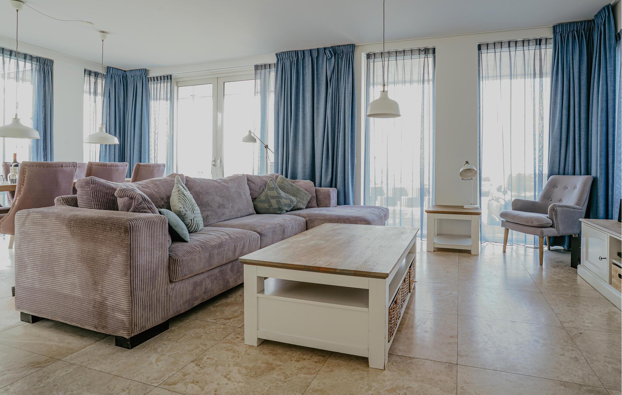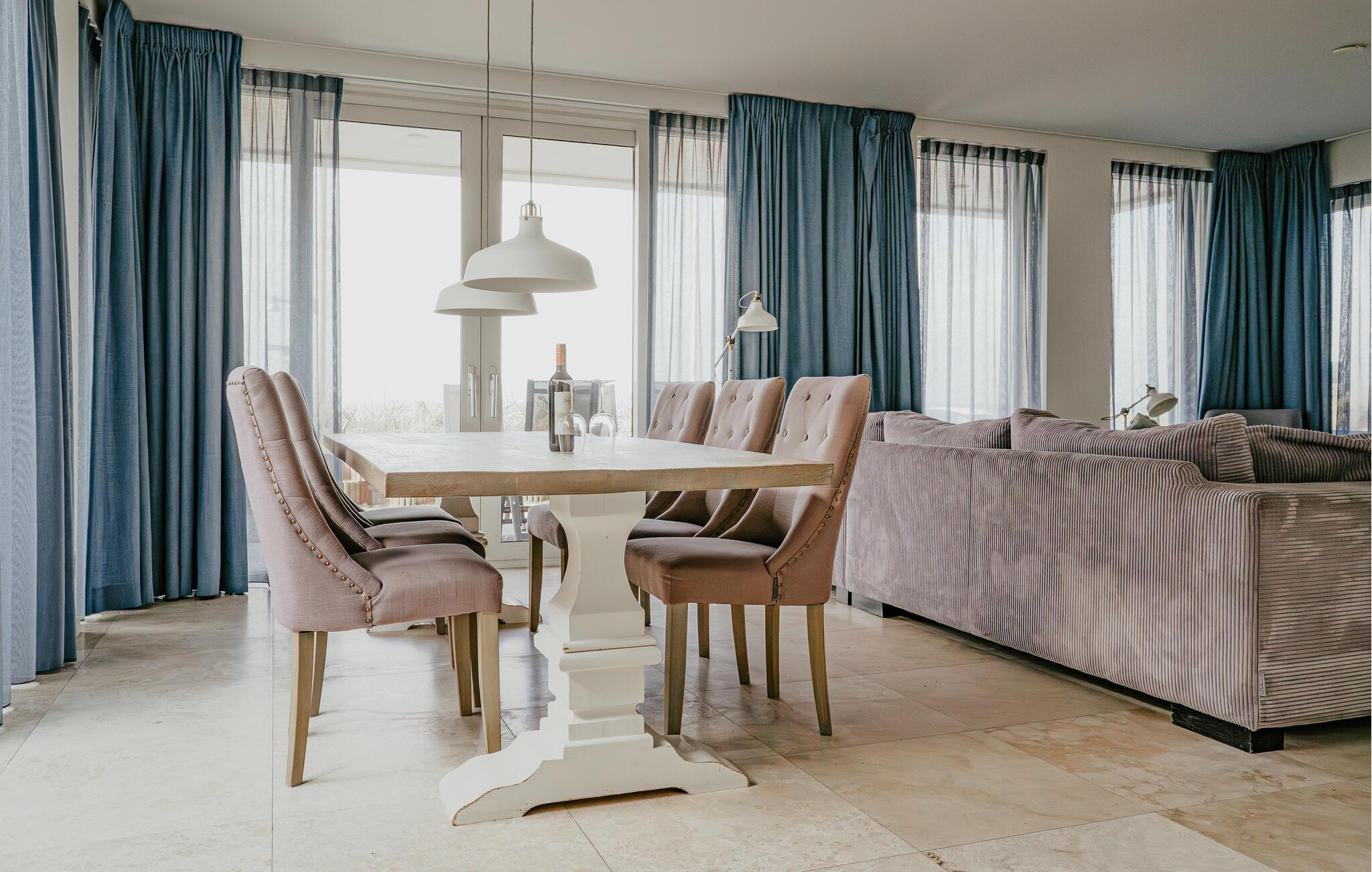 Huset ligger lige ud til havet og byder på egen terrasse, hvorfra I kan nyde den vide udsigt over Nordsøen. Lejligheden er noget særligt med sin hyggelige indretning, en spiseplads og et veludstyret køkken, som giver de perfekte rammer for afslappende aftener. Soveværelserne er indbydende og smagfuldt designet, så boligen er godt indrettet til en ferie med familie eller venner. Den maritime stemning tilfører noget ekstra til boligen.
