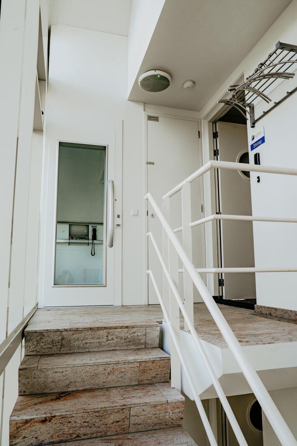 "Shrimp", 4-room apartment 210 m2 on 2nd floor. Bright, stylish furnishings: living/dining room with dining table, international TV channels, flat screen and radio. Exit to the balcony. 1 room with 1 bed. Open kitchen (oven, dishwasher, Gas stove, microwave, electric coffee machine). Shower, sep. WC. Heating. Upper floor: with sloping ceilings, 1 double bedroom with 2 beds, bath/shower/bidet/WC and double hand-basin. 1 double bedroom with 2 beds. Large balcony. Balcony furniture. Very beautiful panoramic view of the sea. Facilities: washing machine, dryer. Internet (WiFi, free). Please note: non-smoking house. Smoke alarm. Pets on request.