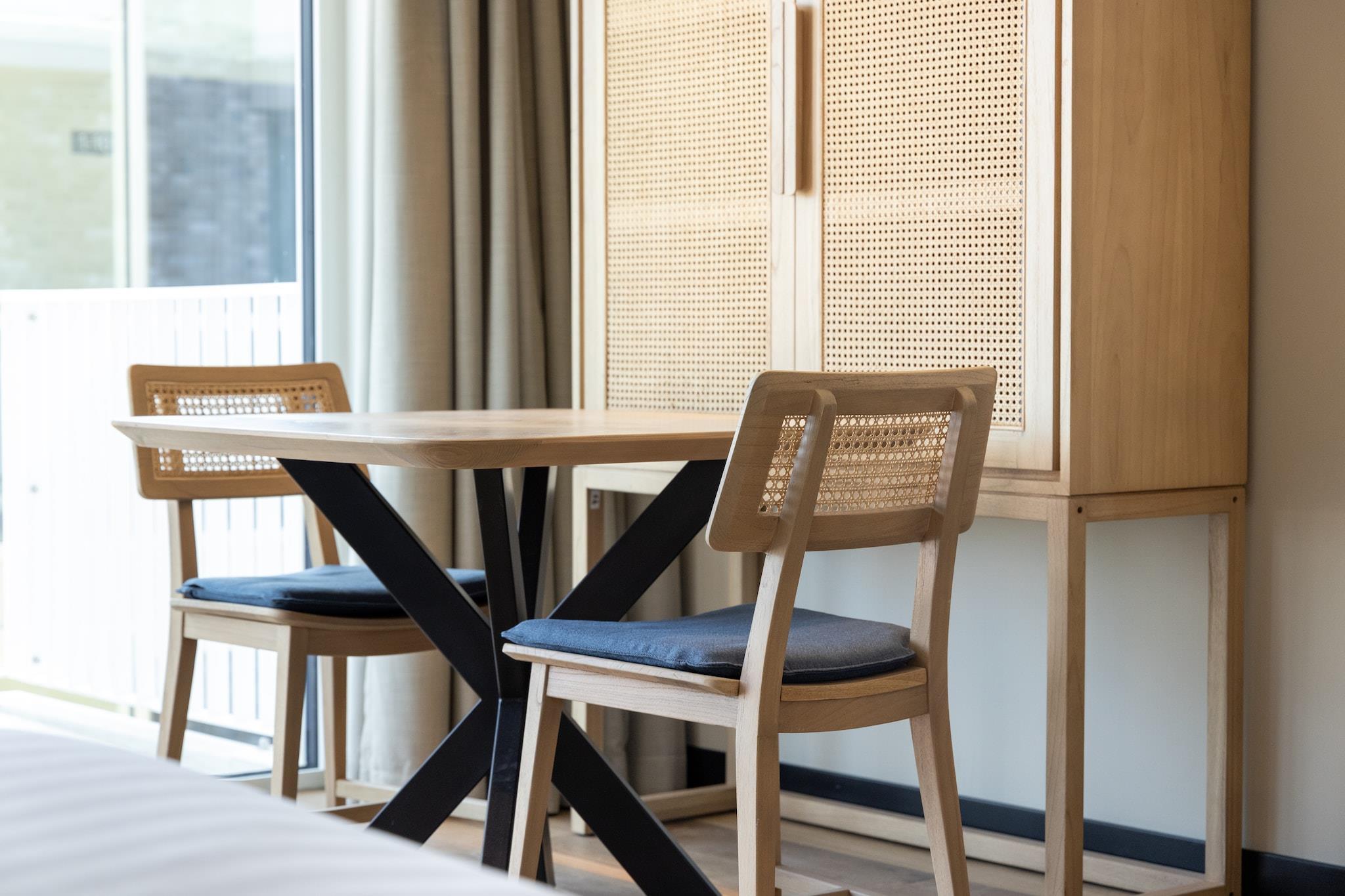Entre, åbent køkken(elkedel, kaffemaskine(kaffepude), combi-mikroovn, opvaskemaskine , køle-fryseskab), Stue/soveværelse(dobbeltseng eller 2 enkeltsenge Senge, Fjernsyn(Smart-TV)), badeværelse(bruser(Walk-in-bruser), håndvask, toilet), varme(central)
