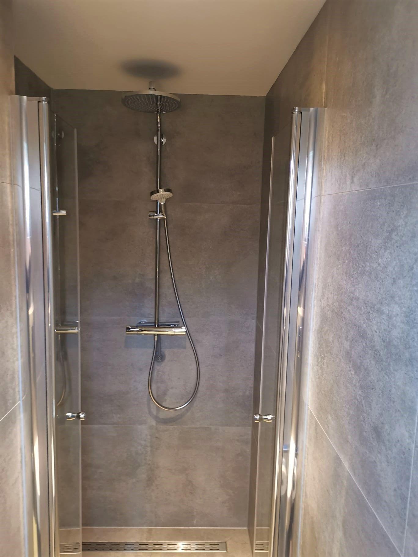 Upon entering, you first enter the hall where the shower and toilet are located.