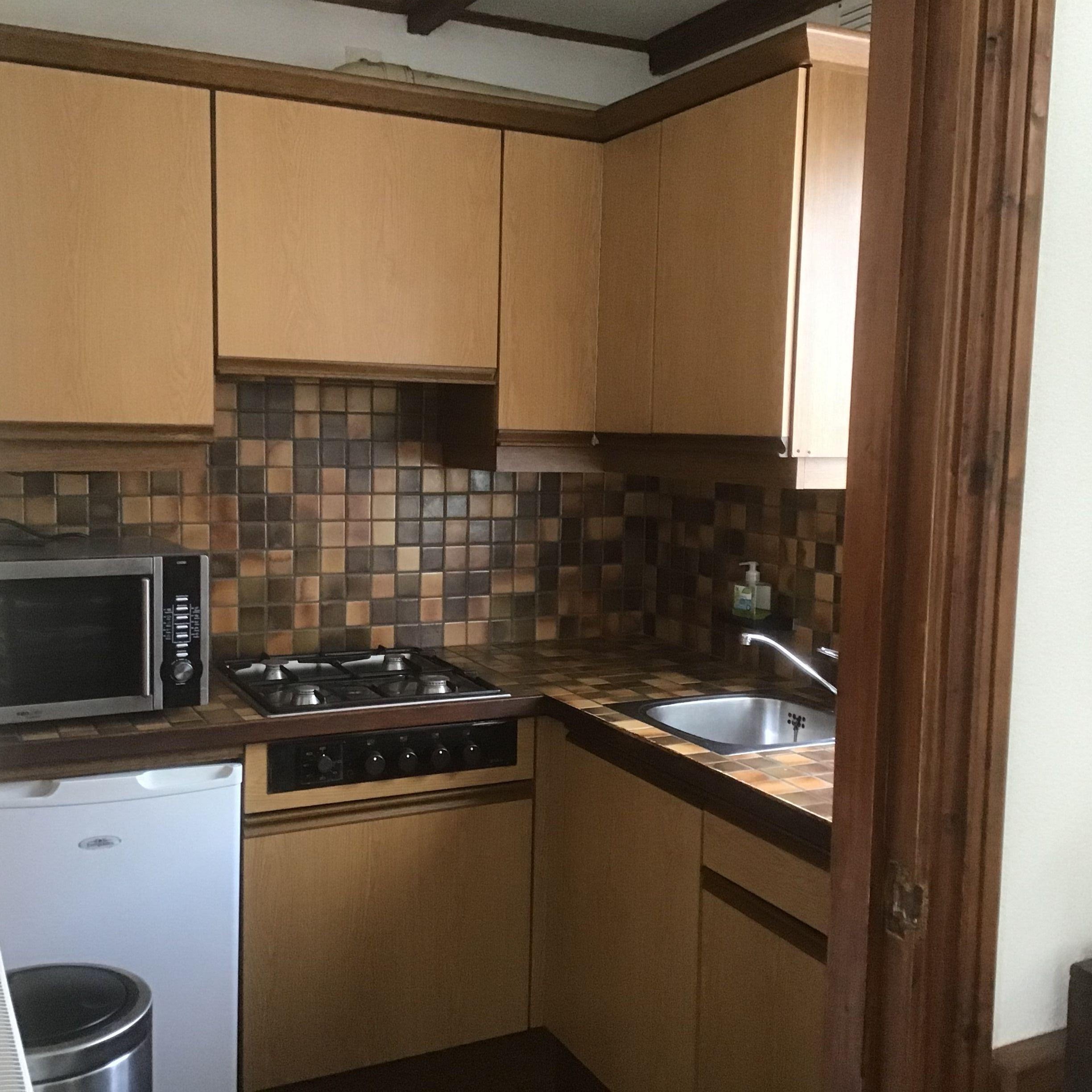 THERE IS A SEPARATE KITCHEN EQUIPPED WITH APPLIANCES, MICROWAVE, FRIDGE WITH A SMALL FREEZER COMPARTMENT, COFFEE MACHINE, KETTLE AND TOASTER. YOU CAN COOK ON A GAS COOKER.