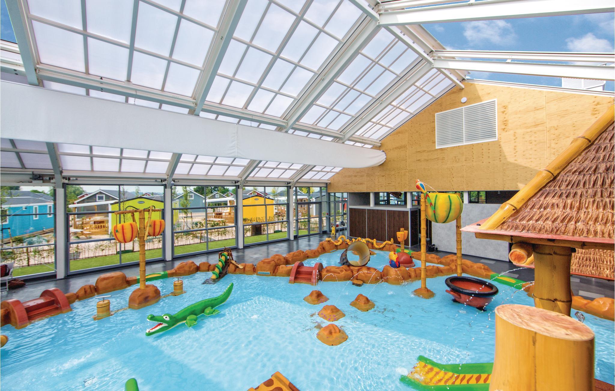 I bor i en feriepark med mange aktivitetstilbud, og om sommeren har I adgang til en overdækket udendørspool. Der er også en indendørs pool med vandrutsjebane og vandlegeplads. Tag og sidevægge kan skubbes til side i godt vejr. Der er også restauranter, indendørs legeplads og mulighed for vandsport.